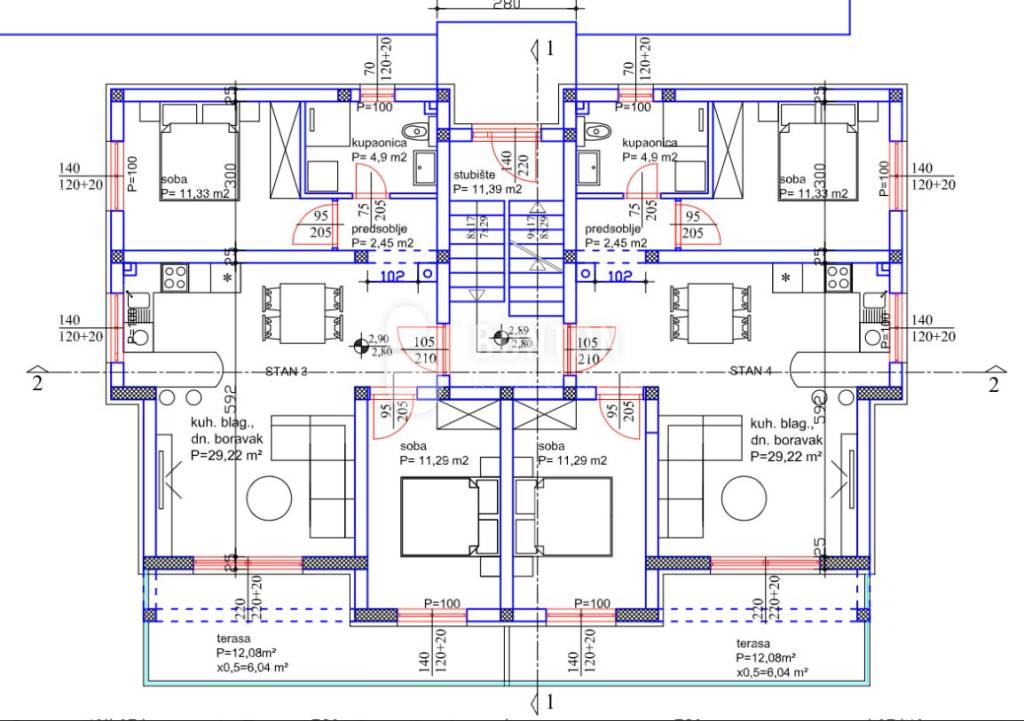 - Kuhinje, blag. i dn.boravak (29,22 m2)