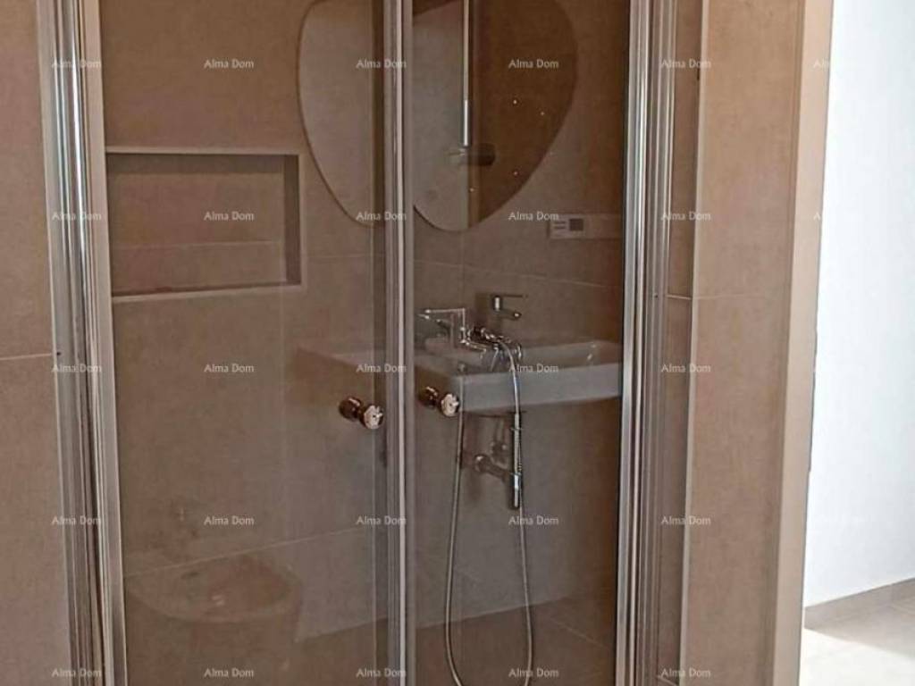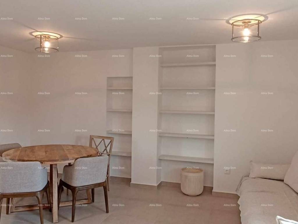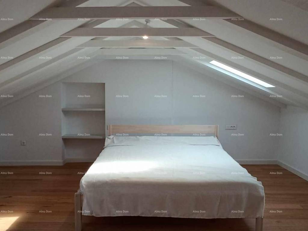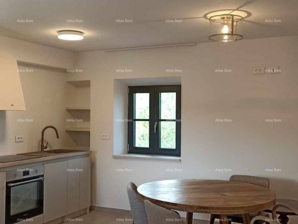 U dnevnom boravku izrađeni su po mjeri veliki lijepi komforni ormari. Autohtoni istarski kameni detalji prisutni su u kupaoni , kuhinji i hodniku.