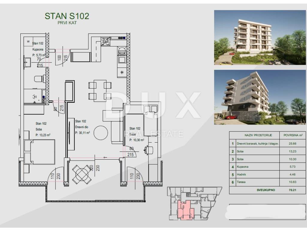 Ekskluzivan stan 2S+DB, površine 70,21 m2 na 1. katu s pogledom na more u kvalitetnoj novogradnji + parkirno mjesto.