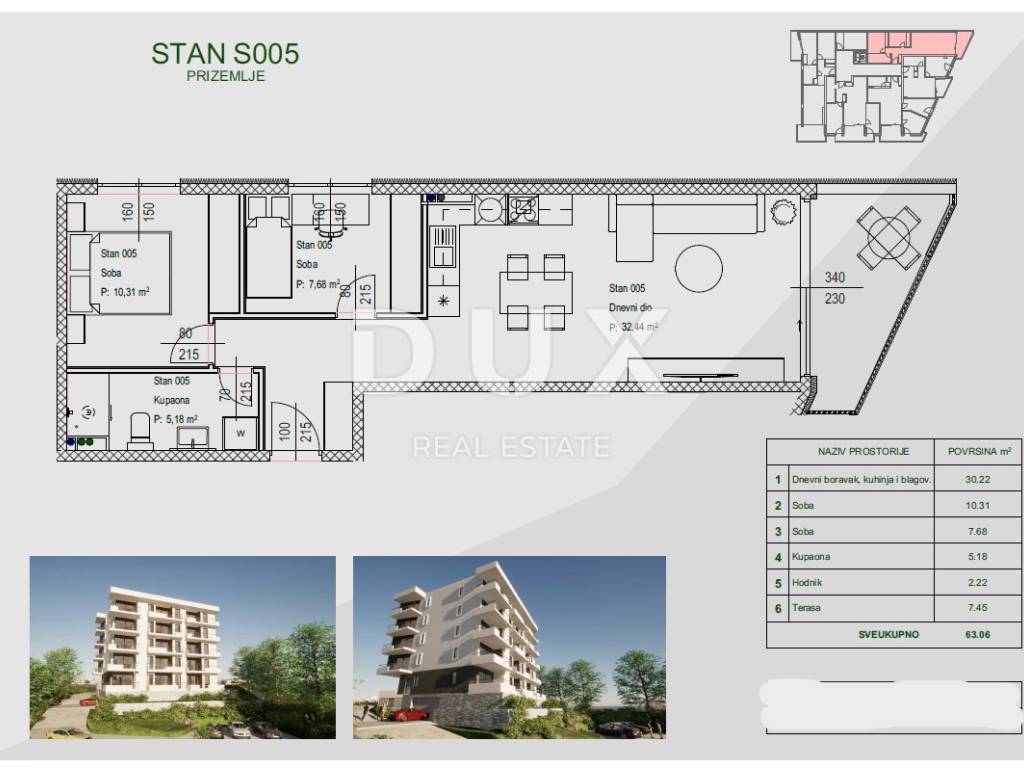 Ekskluzivan stan 2S+DB, površine 63,06 m2 u prizemlju s pogledom na more u kvalitetnoj novogradnji + parkirno mjesto.