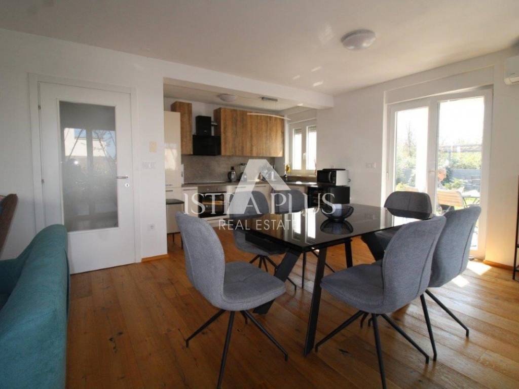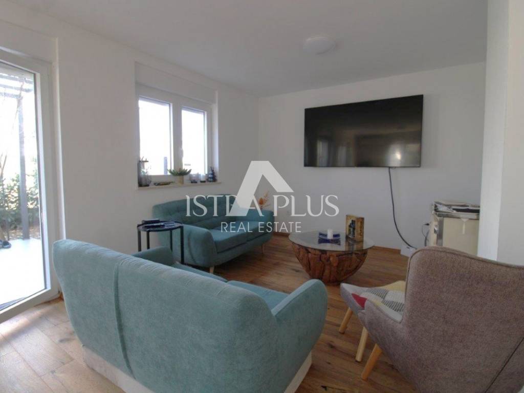 Prizemlje je funkcionalno osmišljeno te obuhvaća ulazni hodnik s garderobom i kupaonicu. U nastavku se nalazi svijetao, osunčan open-space prostor koji povezuje dnevni boravak, blagovaonicu i kuhinju.