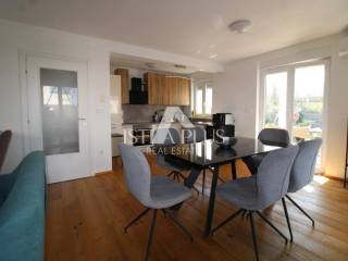 Obiteljska kuća , kvalitetno građena krajnja u nizu, ukupne površine 136,38 m, raspoređena na tri etaže, smještena na mirnoj lokaciji na rubu naselja, svega 5 km od grada i mora.