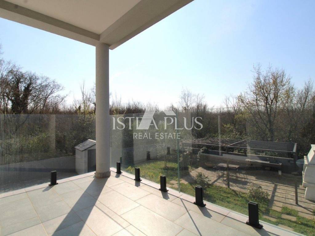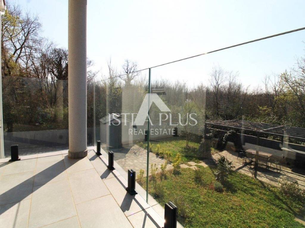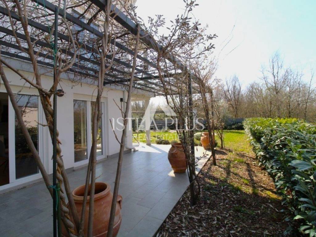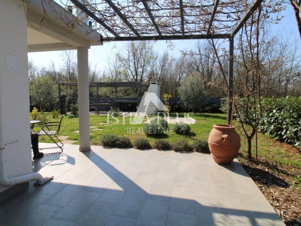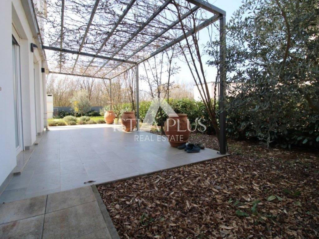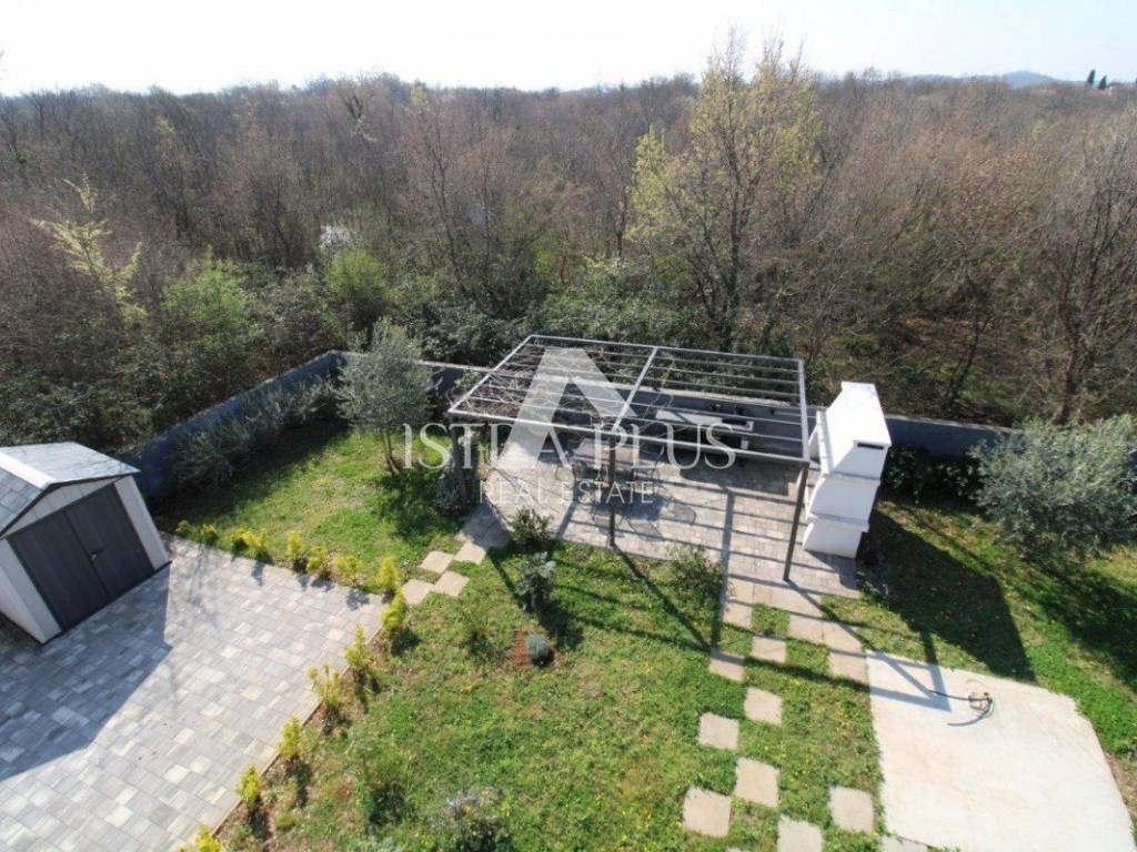 Iz dnevnog dijela omogućeni su izlazi na natkrivenu terasu s pergolom i prostrano, prema zapadu orijentirano dvorište površine 335 m.