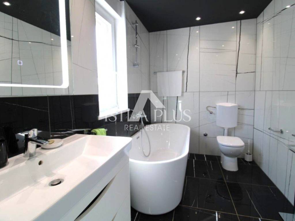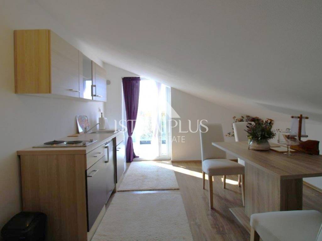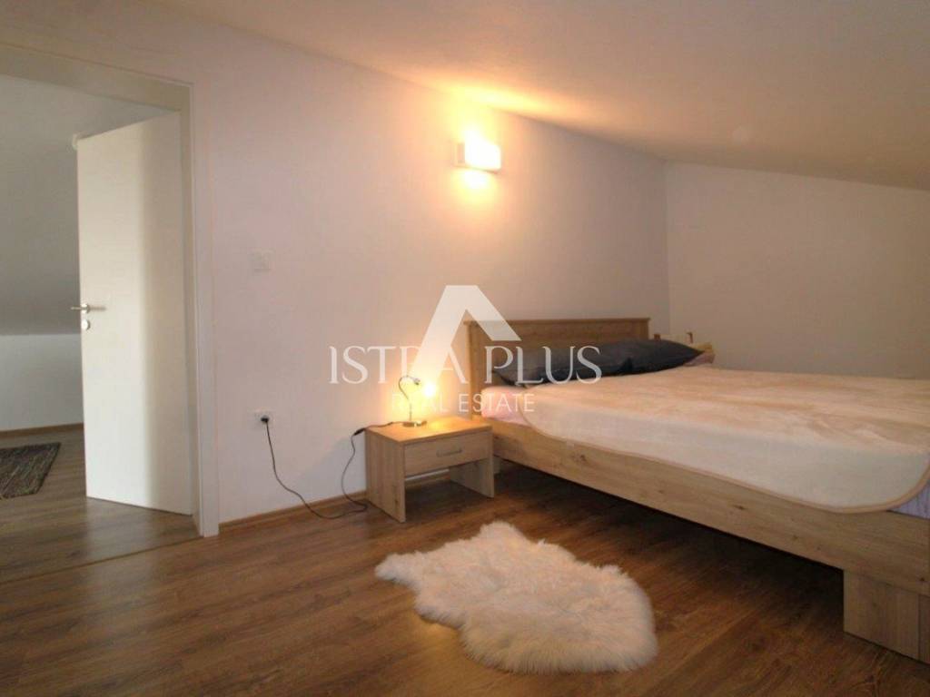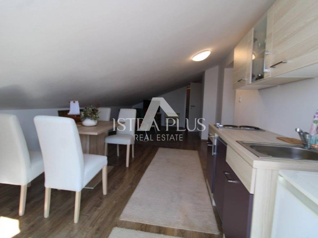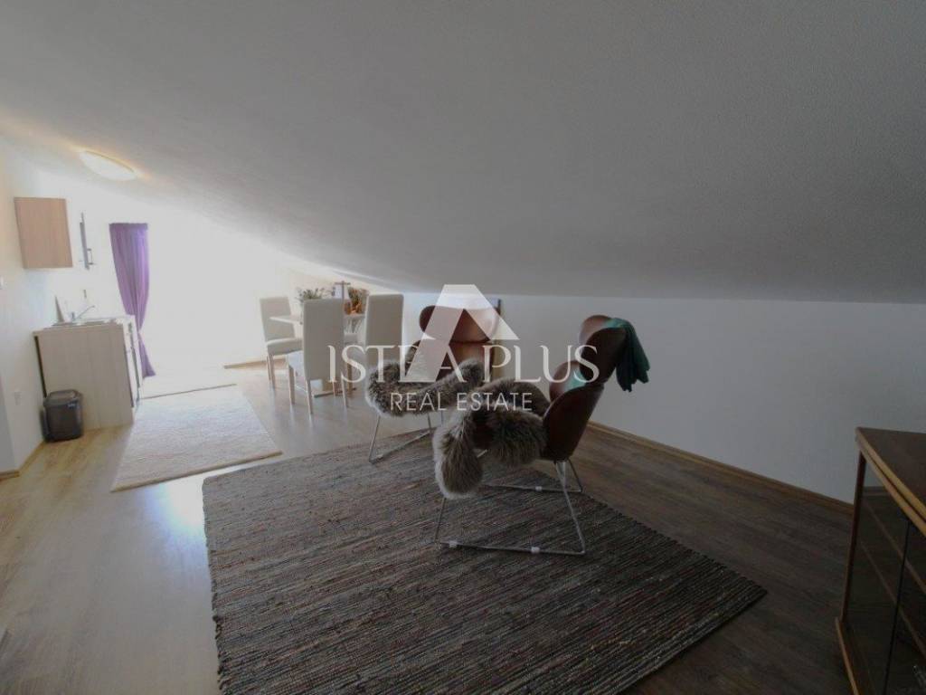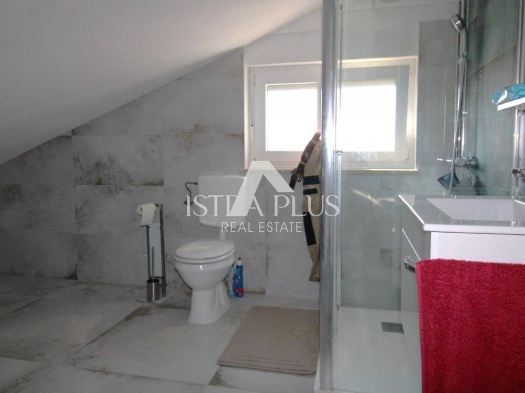Potkrovlje je uređeno kao zasebna stambena jedinica apartman koji se sastoji od kuhinje s dnevnim dijelom i izlazom na terasu s pogledom na more, kupaonice, spavaće sobe i spremišta, što pruža dodatnu fleksibilnost korištenja.