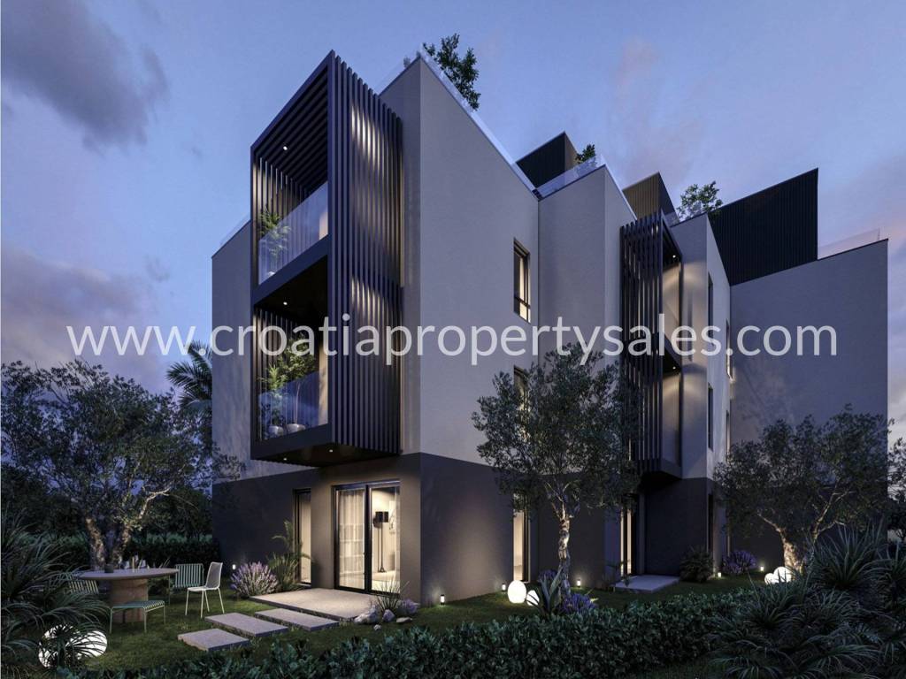 Luksuzna novogradnja stanova raspoređenih u dvije zgrade nudi moderan i udoban život na mirnoj lokaciji, samo 300 metara od mora. Stanovi su dostupni u različitim veličinama od 40 m2 do vrlo prostranih jedinica površine do 155 m2, s velikim terasama. Svaki stan projektiran je s naglaskom na kvalitetu, funkcionalnost i obilje prirodnog svjetla. Projekt također uključuje vlastiti parking za stanare. Stanovi: A/S4- 57 m2 + 3 m2 terasa - 240 000 EA/S5- 40 m2 + 4 m2 terasa - 176 000 EA/S7- 81 m2 + 3 m2 balkon + 42 m2 terasa - 504 000 EB/S4- 57 m2 + 5 m2 terasa - 244 000 EB/S8- 100 m2 + 55 m2 terasa - 620 000 E