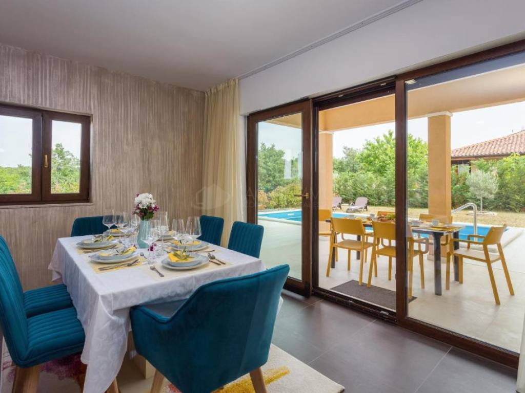 Uređena okućnica uključuje bazen sa sunčalištem, veliku natkrivenu terasu s ljetnom kuhinjom, vrt te dva privatna parkirna mjesta. Kuća je građena suvremenom tehnologijom, korišteni su kvalitetni materijali, u potpunosti je klimatizirana, a svaka prostorija ima vlastiti klima uređaj. Nekretnina se prodaje u potpunosti opremljena i namještena te je spremna za useljenje i korištenje odmah, bez potrebe za dodatnim ulaganjima.