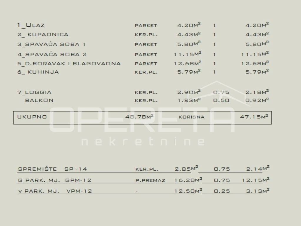 Stan: 48,78 m2 bruto (47,15 m2 neto)