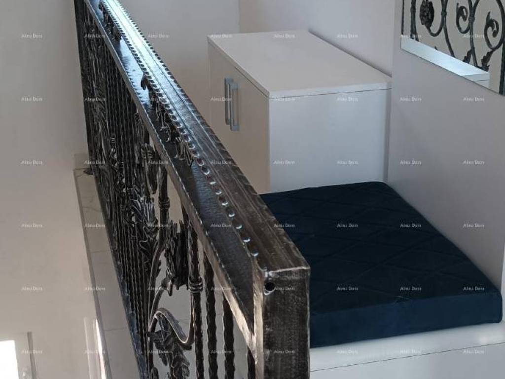 Prodajemo novoizgrađeni apartmanski objekt sa 4 kompletno namještanih apartmana u blizini Rovinja. Zgrada ima 2 ulaza, svaki ulaz ima apartman u prizemlju sa 2 terase, kuhinju i blagovaonu, dnevni boravak i 2 spavaće sobe sa svojim kupaonicama. S glavnog ulaza kroz hodnik po stepenicama se ide na 1 kat u drugi apartman istog rasporeda. U dvorište zgrade se ulaze kroz glavni portun na daljinsko upravljanje i napravljena konstrukcija za natkriljeni parking za 6 vozila unutar dvorišta. Francuske prozore u svim sobama što pune prostorije svjetlom i suncem. Klima uređaj u svakom apartmanu. Unutar posjeda su napravljene pripreme za 2 bazena i 2 vanjskih tuša.