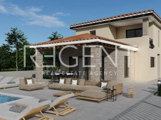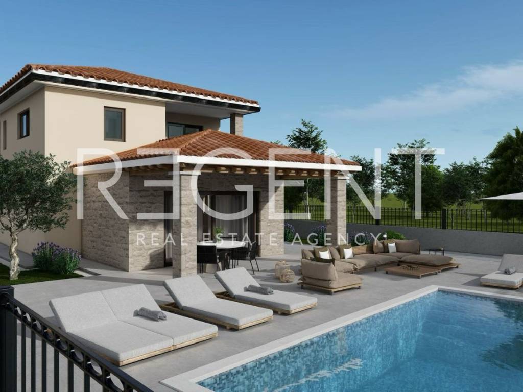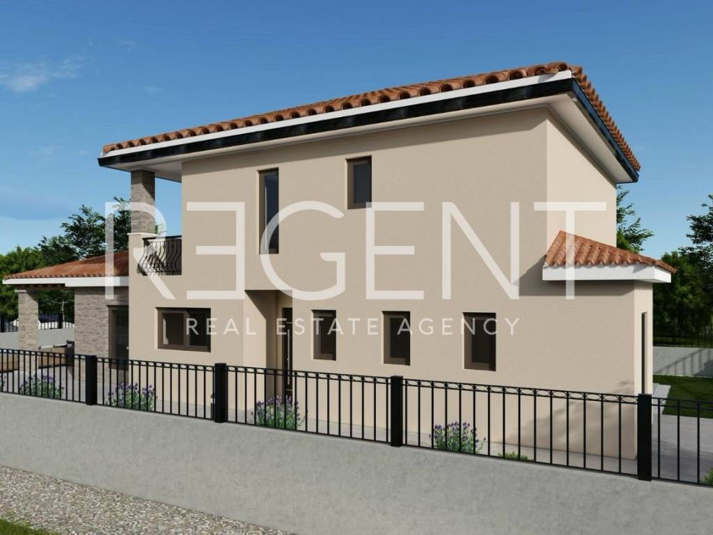 Ova moderna dvoetažna kuća smještena je u mirnoj ulici naselja Vežnaveri, samo nekoliko minuta vožnje od centra Poreča. Okružena parkom i šumom, ova lokacija nudi mirno i uređeno okruženje, idealno za obiteljski život ili kvalitetno turističko ulaganje. Kuća ukupne stambene površine od 166,07 m² raspoređena je na dvije etaže. U prizemlju se nalazi dnevni boravak s kuhinjom i blagovaonicom, dva WC-a, praonica rublja, spavaća soba, garderoba, strojarnica te natkrivena terasa. Na katu su dvije spavaće sobe, dvije kupaonice, garderoba, natkrivena terasa i loggia. Prostor dodatno ističe elegantno dizajnirano lebdeće stepenište koje povezuje etaže. Na zemljištu površine 574 m² smješten je vanjski bazen od 32 m², idealan za opuštanje tijekom toplih mjeseci. U vrtu su posađene dvije masline, a parkiralište za dva vozila uređeno je tlakovcem. Uz nadoplatu je moguće ugraditi kamin i vanjski grill. Kuća je orijentirana na sve strane i trenutno je u fazi izgradnje. Lokacija pruža miran boravak u prirodnom okruženju, uz blizinu svih potrebnih sadržaja. Centar Poreča, trgovine i osnovne dnevne potrebe udaljeni su svega nekoliko minuta vožnje. Završetak radova očekuje se prema dinamici izgradnje. Za dodatne informacije, slobodno nas kontaktirajte.