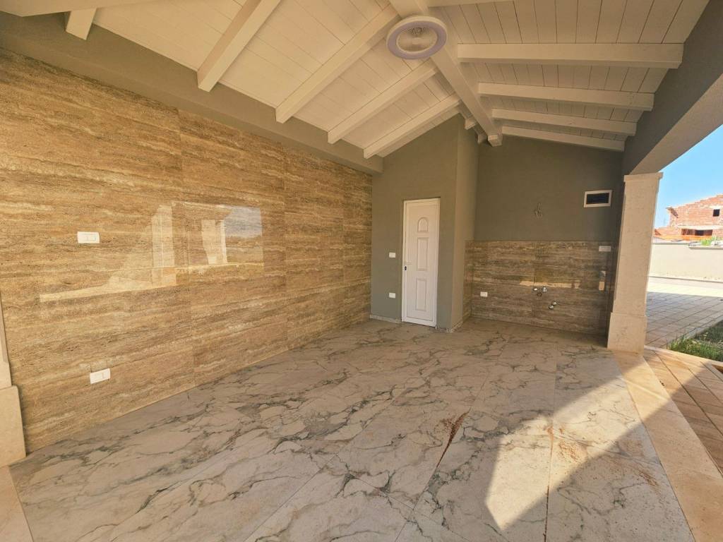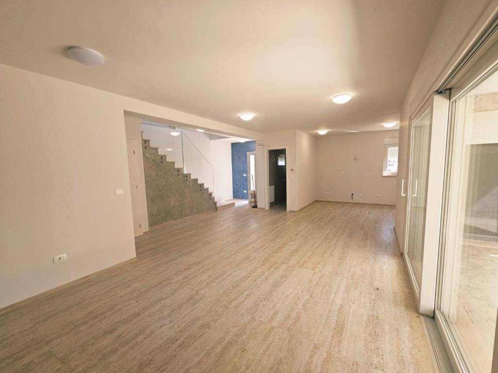 U prizemlju se nalaze kuhinja s blagovaonom, dnevni boravak, kupaonica, tehnička prostorija i spremište. Iz boravka i kuhinje postoji direktan izlaz na natkrivenu terasu.