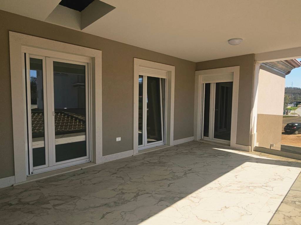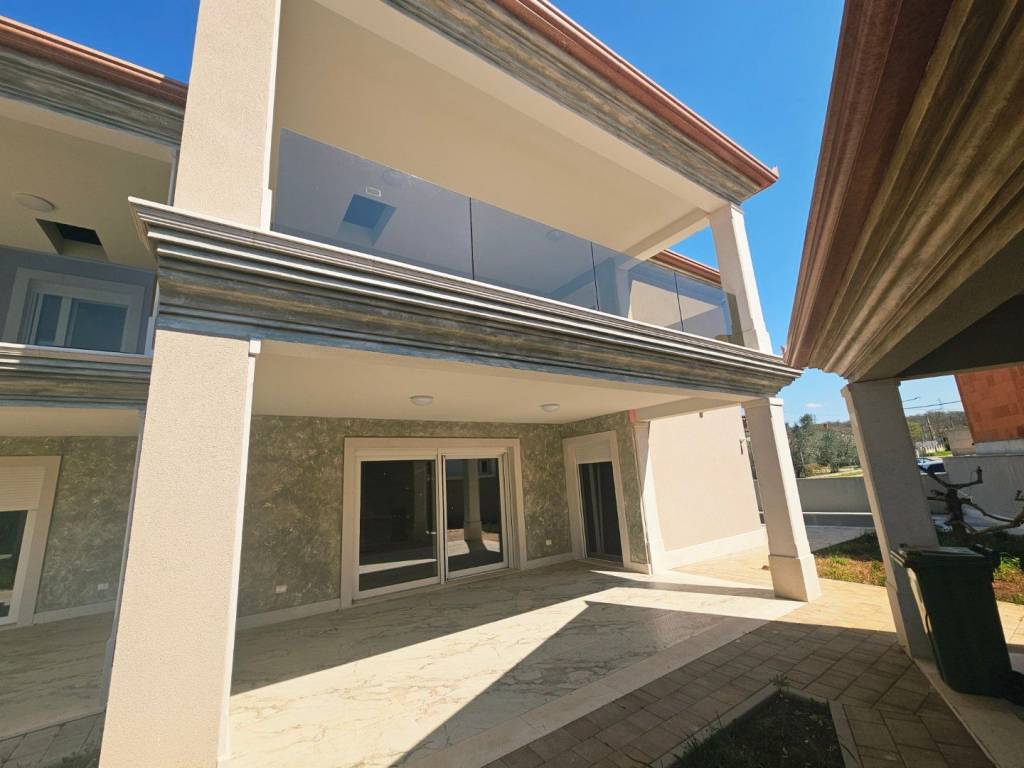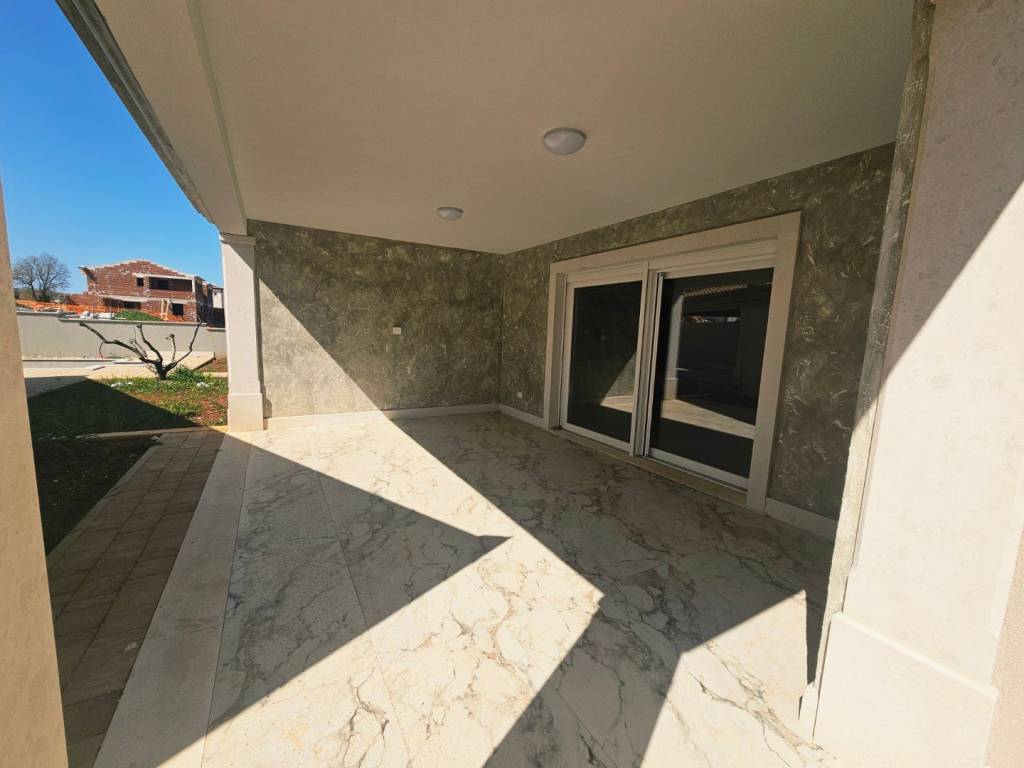 Ova novoizgrađena dvojnica nalazi se u mirnom mjestu blizu Buja, udaljenost do Buja je 3,5 km, do mora 12 km. Mjesto je vrlo mirno i uredno, u susjedstvu se nalaze obiteljske kuće te kuće za odmor. Inače je mjesto okruženo prirodom. Kuća se nalazi uz glavnu asfaltiranu cestu.
