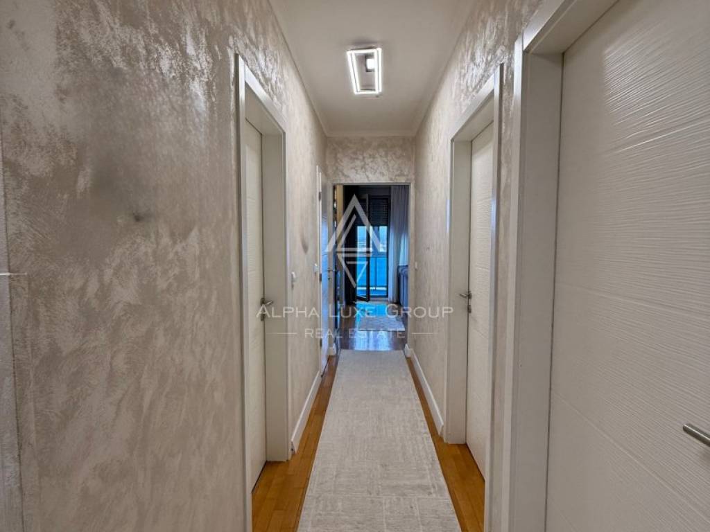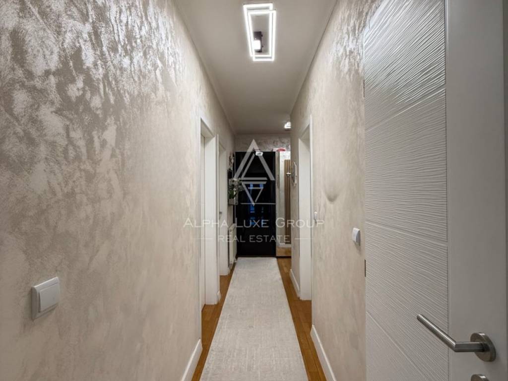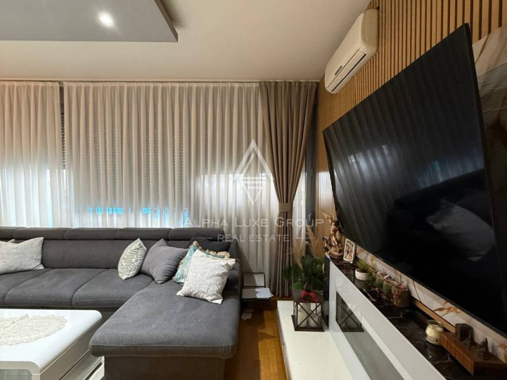 Stan se nalazi na zadnjem katu, što osigurava dodatnu privatnost, mir i otvoren pogled bez neposrednih susjeda iznad. Unutarnji raspored pažljivo je osmišljen kako bi maksimalno iskoristio prostor i omogućio ugodan boravak. Sastoji se od prostranog dnevnog boravka povezanog s kuhinjom i blagovaonicom, s izlazom na balkon, dvije udobne spavaće sobe, kupaonice, zasebnog toaleta te ulaznog hodnika.