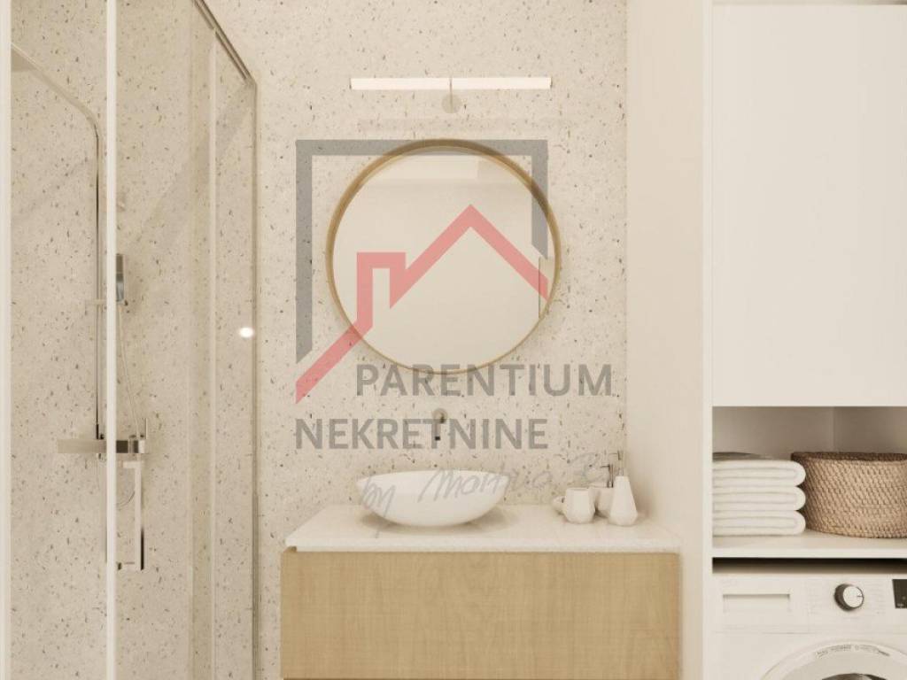 U prodaji je stan u prizemlju novogradnje, smješten na traženoj lokaciji u okolici Poreča, svega 1 km od mora i centra. Ukupna površina stana iznosi 63 m, a pripada mu i okućnica od 45 m, spremište u prizemlju zgrade te jedno parkirno mjesto.