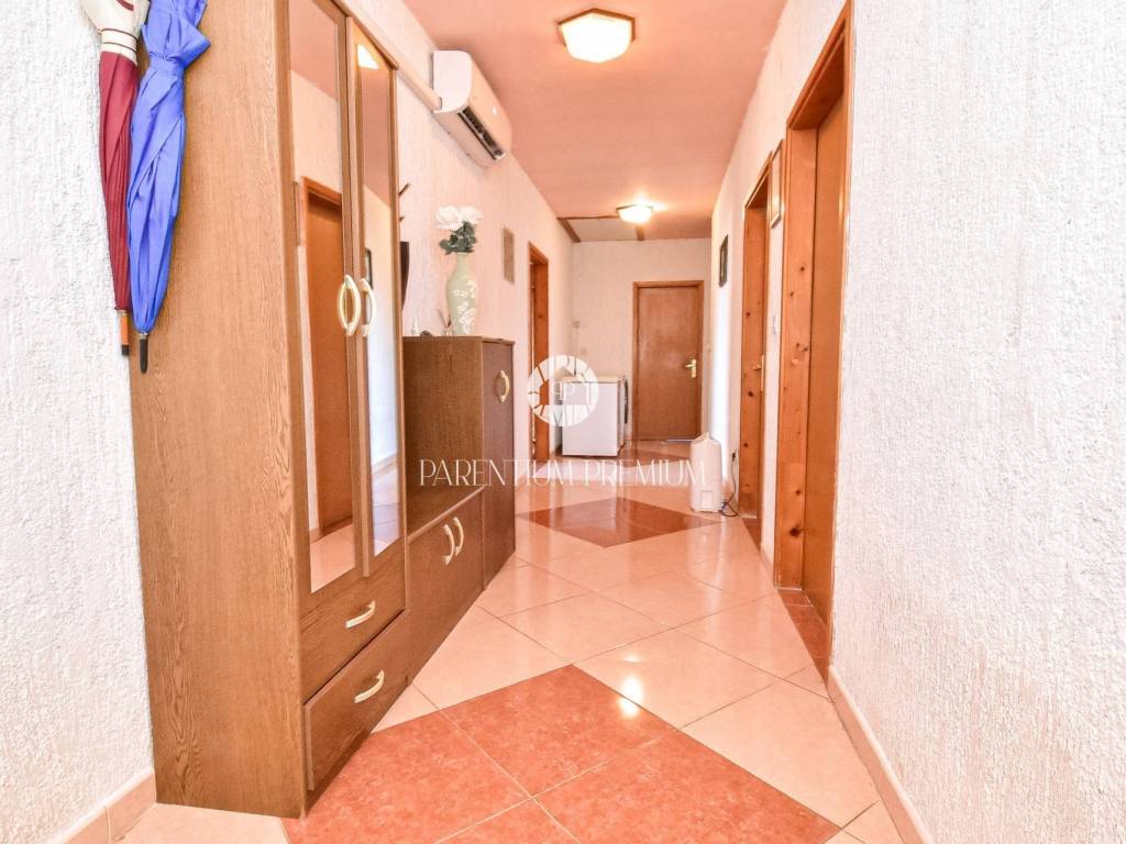 Prodaje se kuća s velikim potencijalom i građevinskim zemljištem, smještena na atraktivnoj lokaciji svega 700 metara od mora. Kuća se prostire na tri etaže ukupne bruto površine 477,07 m, odnosno 377,20 m neto, te je smještena na zemljištu površine 512 m. Uz kuću se nalazi i dodatno građevinsko zemljište površine 701 m, na kojem prema projektu postoji mogućnost izgradnje stambene zgrade sa sedam stambenih jedinica, što ovoj nekretnini daje izniman investicijski potencijal.