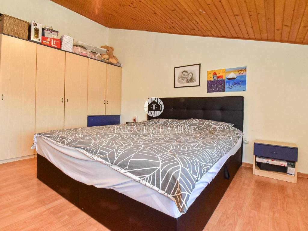 Prizemlje kuće, površine 132,96 m neto, sastoji se od ulaznog hodnika, tri spavaće sobe od kojih svaka ima vlastitu kupaonicu, kuhinje s dnevnim boravkom te natkrivene terase, s tim da prostor nije uređen i ostavlja novom vlasniku mogućnost uređenja ili prenamjene prema vlastitim željama. Na prvom katu, površine 124,04 m neto, nalazi se ulazni hodnik, tri spavaće sobe, kupaonica, gostinjski WC, kuhinja s blagovaonicom, dnevni boravak i natkrivena terasa. Drugi kat, površine 120,20 m neto, rasporedom prati prvi kat te se sastoji od tri spavaće sobe, kupaonice, WC-a, kuhinje s blagovaonicom, dnevnog prostora i terase.