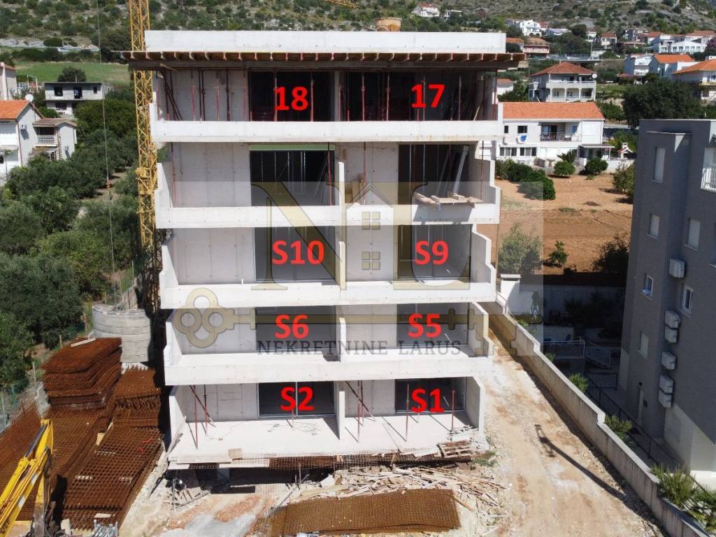 Prodajemo stan S9 na drugom katu stambene zgrade, 250 metara od mora i plaže, Seget Donji. Zgrada se nalazi u Segetu Donjem, 250 metara od mora i plaže, centar Trogira je udaljen svega 2 km. U blizini se nalaze dućani, kafići, restorani. Zgrada ima garažu i lift. Stan S9 na drugom katu se sastoji od 2 spavaće sobe, 2 kupatila, kuhinje i dnevnog boravka, hodnika i balkona. Orijentacija stana je jug - istok. Cijena garažnog mjesta 15 000 EUR. Površine: - unutarnji dio stana: 57,33 m2 - balkon: 13,81 m2 Ukupno podna površina: 71,14 m2