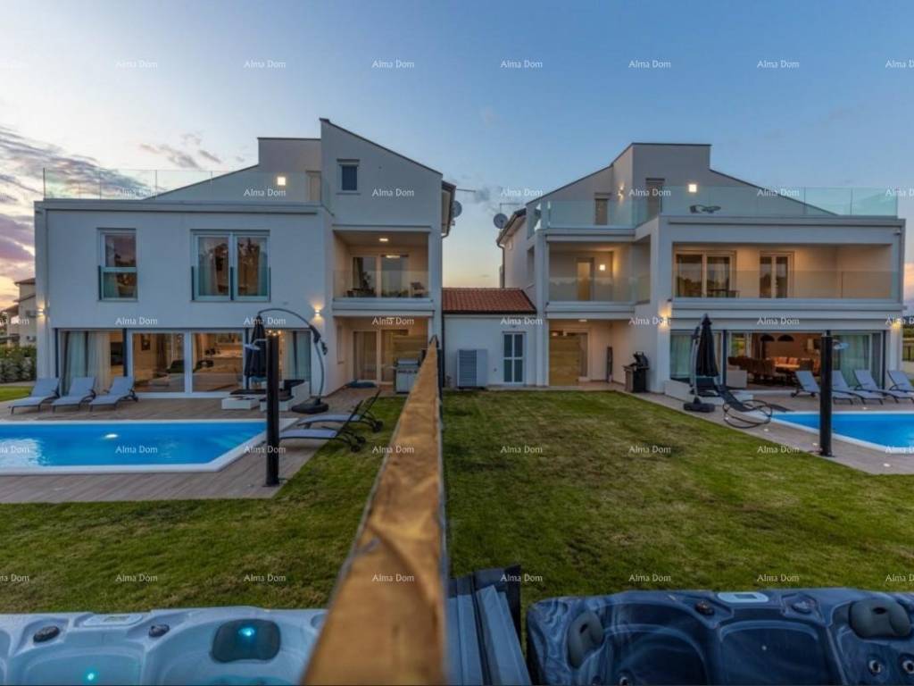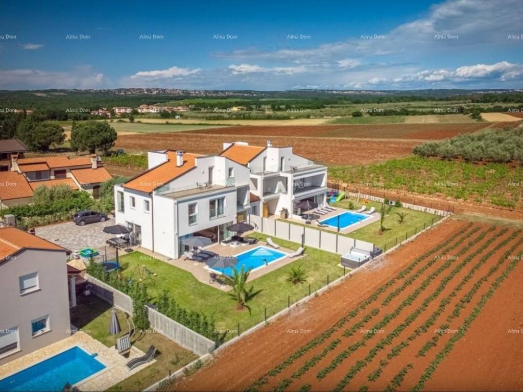 Prodajemo prekrasnu novogradnju sa šest spavaćih soba , četiri kupaonice (1 kada, 3 tuš kabine), kuhinjom sa blagovaonicom za dvanaest osoba, velikim dnevnim boravkom. Kuća ima veliku okućnicu sa grijanim bazenom veličine 26,5 m2 sa slapom i masažnim pumpama, jacuzzi, sauna, dječje igralište, trampolin, roštilj....kuća se iznajmljuje u turističke svrhe i opremljena je sa svim potrebnim sadržajima, te se kao takva i prodaje. Grijanje/hlađenje na dizalice topline. Sve prostorije su klimatizirane. Kvalitetna gradnja i unutarnje uređenje, mirna lokacija idealna za savršeni odmor.