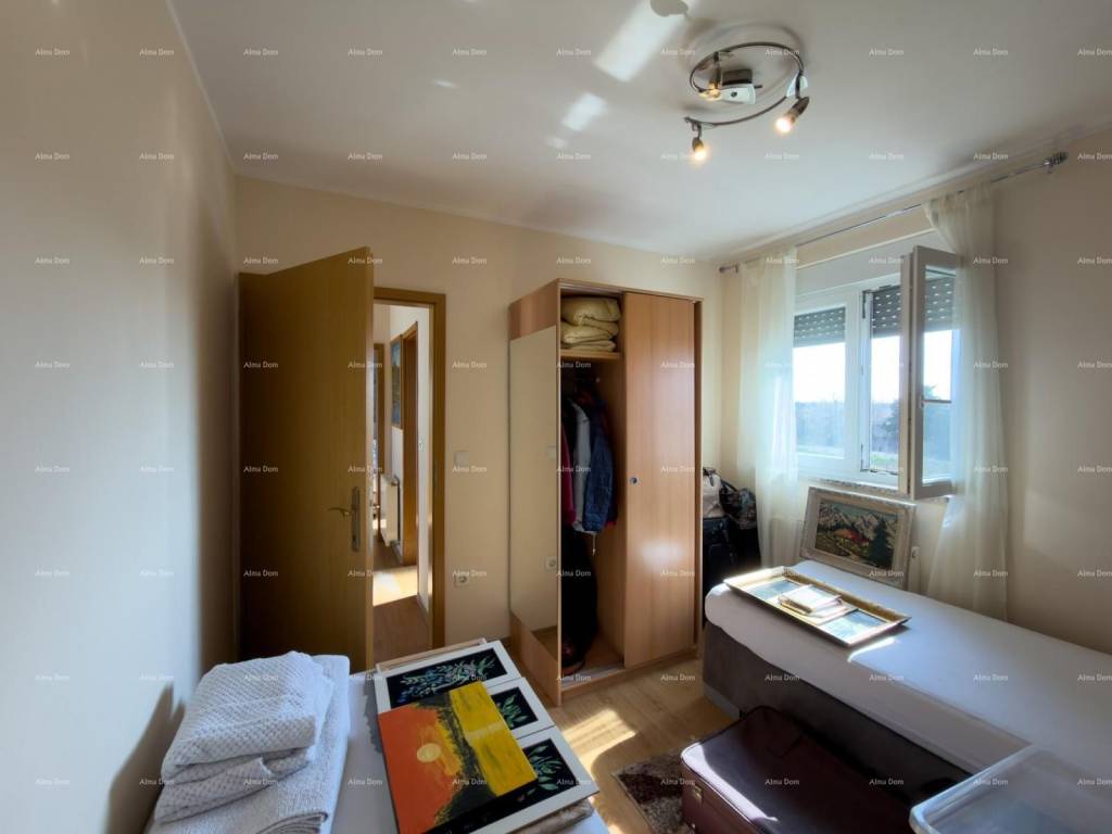 Veći stan se sastoji od kupatila, ostave, kuhinja, blagovaonice i dnevnog boravka iz kog se izlazi na natkrivenu terasu i vrt u kom je bazen i roštilj. Unutarnje stepenice vode na kat na kom se nalaze četiri spavaće sobe i kupatilo. Manji stan ima zaseban ulaz i sastoji se od jedne spavaće sobe, kupatila, kuhinje, blagovaonice i dnevnog boravka iz kog se izlazi na natkrivenu terasu.