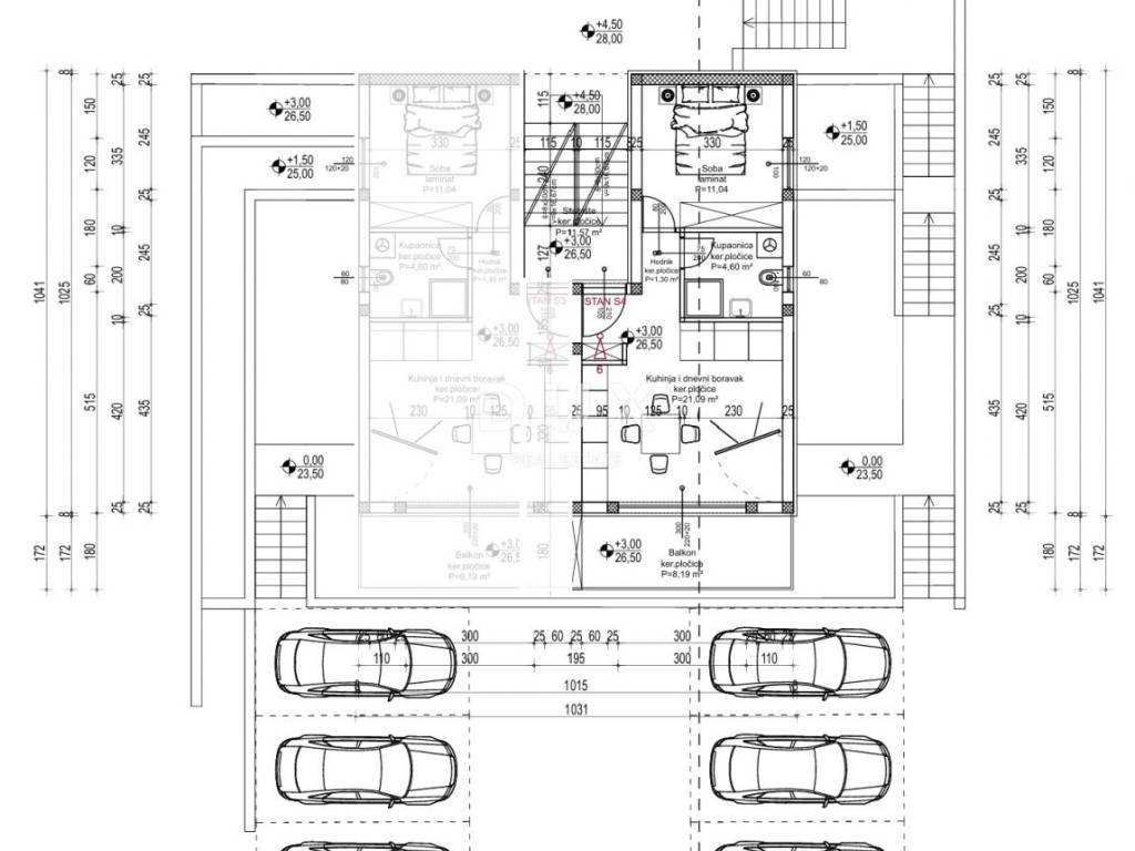 Raspored prostora: - ulazni hodnik s ugradbenim ormarom - kupaonica s tehničkim dijelom i vrhunskim sanitarijama - spavaća soba od 11 m2 - prostrani dnevni boravak s kuhinjom i blagovaonicom - natkriveni balkon s pogledom na more