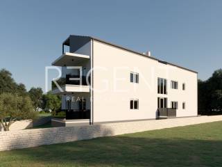 U ponudi je prostran četverosoban stan smješten u prizemlju moderne stambene zgrade, na mirnoj i atraktivnoj lokaciji u blizini mora. Stan je idealan za obitelji koje traže komfor, privatnost i funkcionalan raspored, ali i kao dugoročna investicija. Stan ima ukupnu neto površinu od 135,96 m² te se sastoji od prostranog dnevnog boravka s kuhinjom i blagovaonicom, tri spavaće sobe, dvije kupaonice, predsoblja, ulaznog hodnika i dodatne utility prostorije. Dodatnu vrijednost pružaju dvije prostrane terase ukupne površine 18,69 m² koje omogućuju ugodan boravak na otvorenom. Stan je opremljen podnim grijanjem na gradski plin i klimatizacijom, dok su podne obloge kombinacija keramike i parketa. Aluminijska stolarija s električnim roletama i komarnicima, protuprovalna vrata te video parlafon dodatno podižu razinu sigurnosti i kvalitete stanovanja. Nekretnina se nalazi u mirnom rezidencijalnom okruženju, u blizini svih važnih sadržaja za svakodnevni život. Trgovine, škola i vrtić udaljeni su svega nekoliko minuta vožnje, dok su more i uređene plaže udaljeni približno 900 metara što ovu lokaciju čini izuzetno atraktivnom kako za stanovanje tako i za odmor. Zgrada je u fazi izgradnje, a završetak radova predviđen je za srpanj 2026. godine. Kupnja je moguća uz fleksibilne uvjete plaćanja, uključujući plaćanje po fazama gradnje ili putem stambenog kredita. Cijena uključuje PDV. Za više informacija ili dogovor razgledavanja, slobodno nas kontaktirajte.