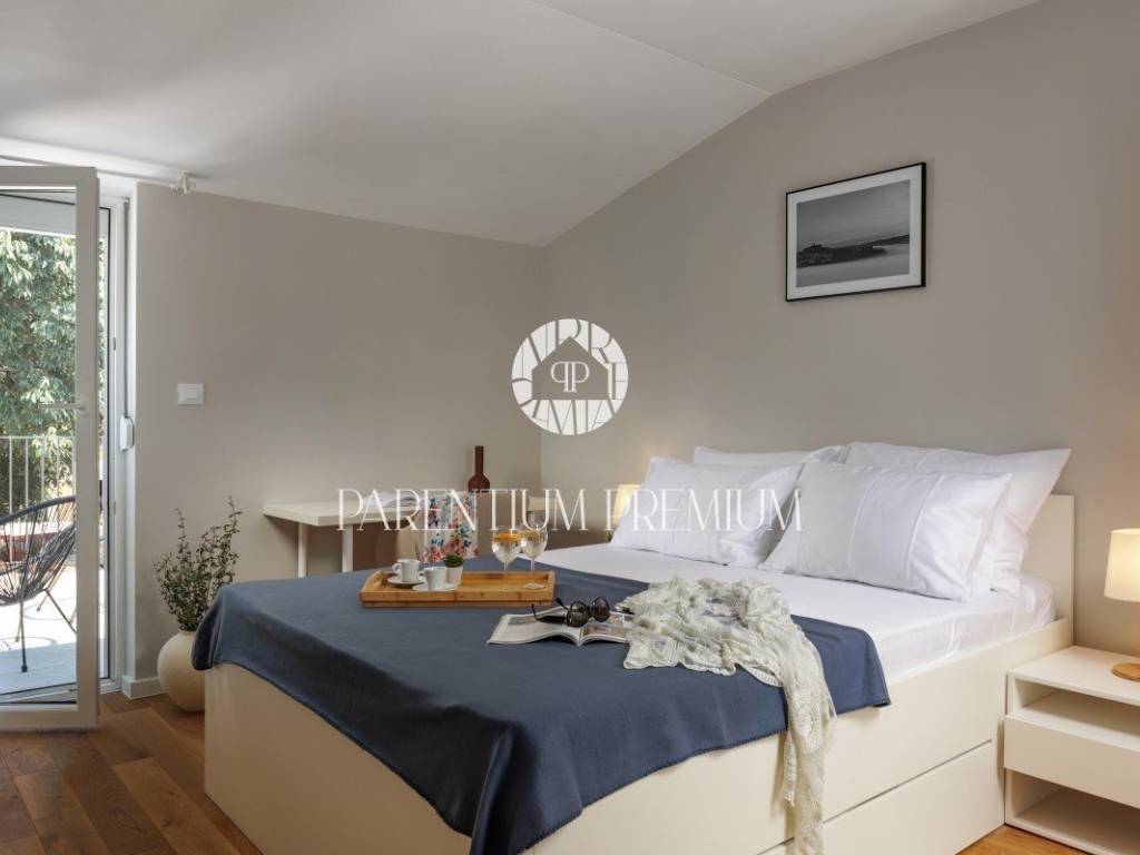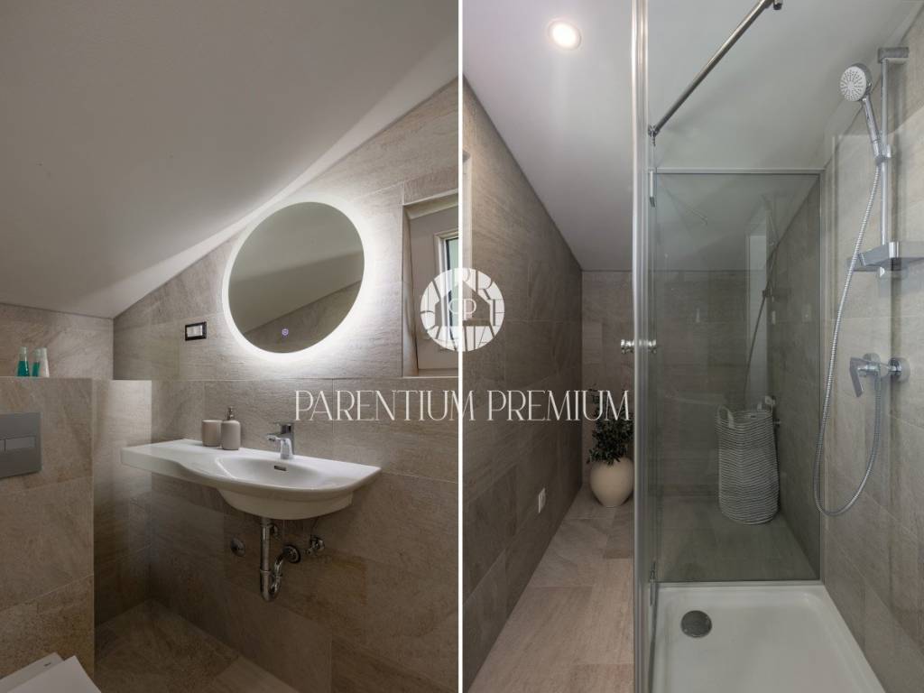 Na katu se smještaju tri prostrane spavaće sobe, a među njima se izdvaja master spavaća soba s vlastitom kupaonicom i izlazom na veliku terasu s pogledom koji oduzima dah. Preostale dvije spavaće sobe dijele zajedničku kupaonicu s tušem. Te također imaju izlaz na svoje privatne balkone, pružajući vam nevjerojatan pogled na okoliš.