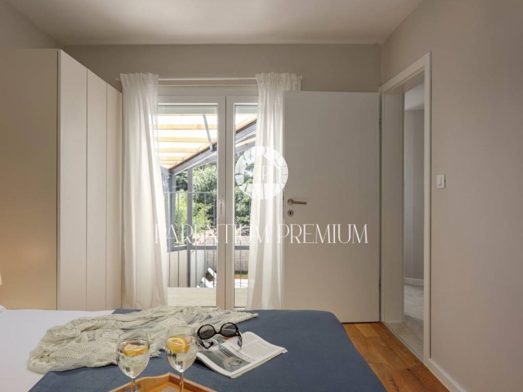Kuća je opremljena modernim klima uređajima koji omogućuju ugodnu temperaturu tijekom cijele godine. Izgrađena je s pažljivim odabirom visokokvalitetnih materijala i uređena je u modernom stilu.