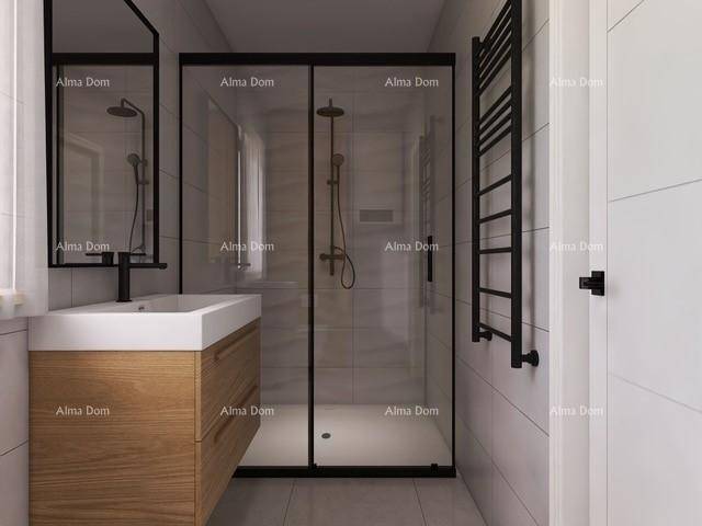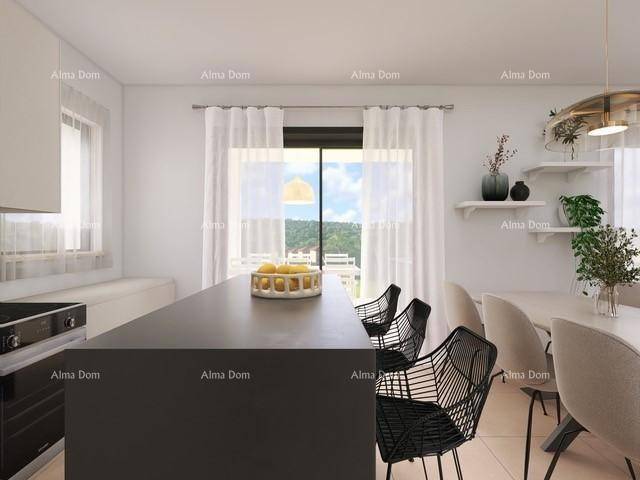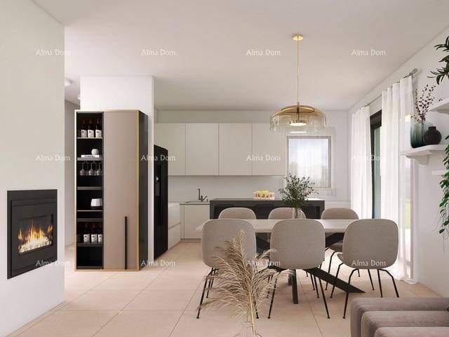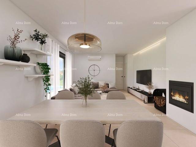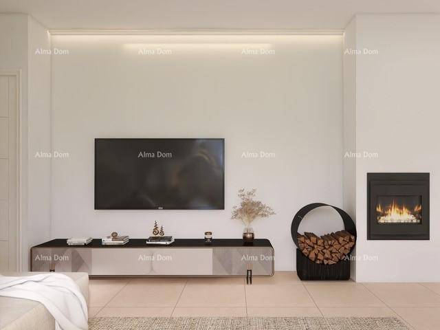 Sastoji se od ulaza, kuhinje, blagovaonice, dnevnog boravka, 1 spavaće sobe, kupaonice i dodatne prostorije/vešeraja. Iz dnevnog boravka se izlazi na veliku terasu s ljetnom kuhinjom.