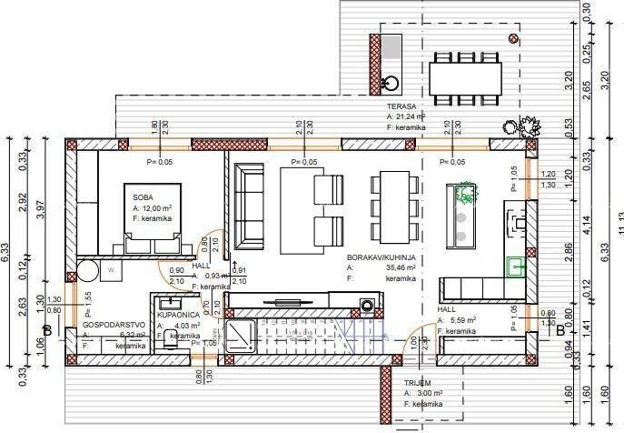 Kuća će imati solarne panele, kamin, el. podno grijanje na Wi-Fi, pločice u prizemlju i parket na katu.