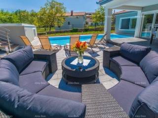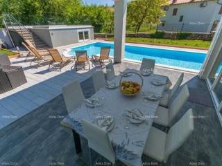Ova kuća nalazi se u okolici Labina na mirnoj lokaciji ukupne površine 270 m2. Kuća je ograđena i nudi privatnost, sa lijepo uređenom okućnicom i bazenom. Kuća ima 4 spavaće sobe i 4 kupaonice, prostrani dnevni boravak i kuhinju. Udaljenost do mora je 10 km i u neposrednoj blizini grada Labina tako da su svi sadržaji u blizini. Kuća ima uhodani posao iznajmljivanja.