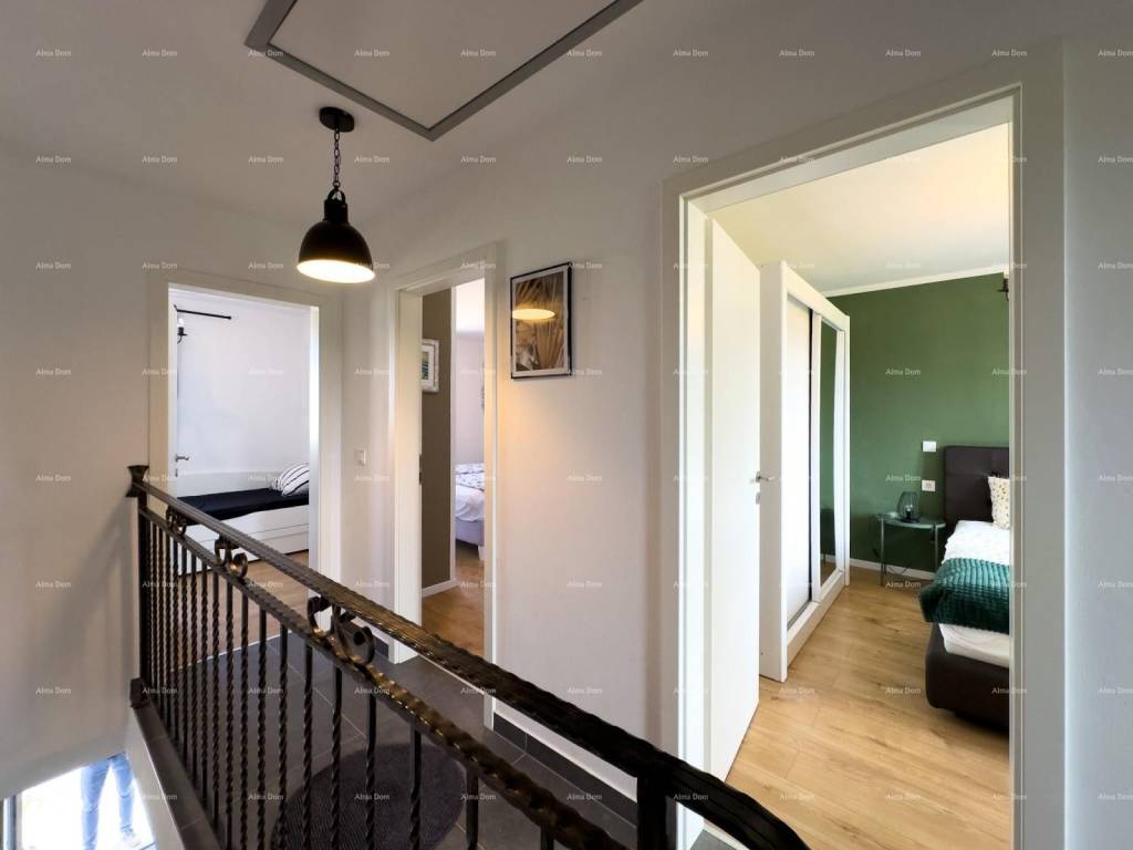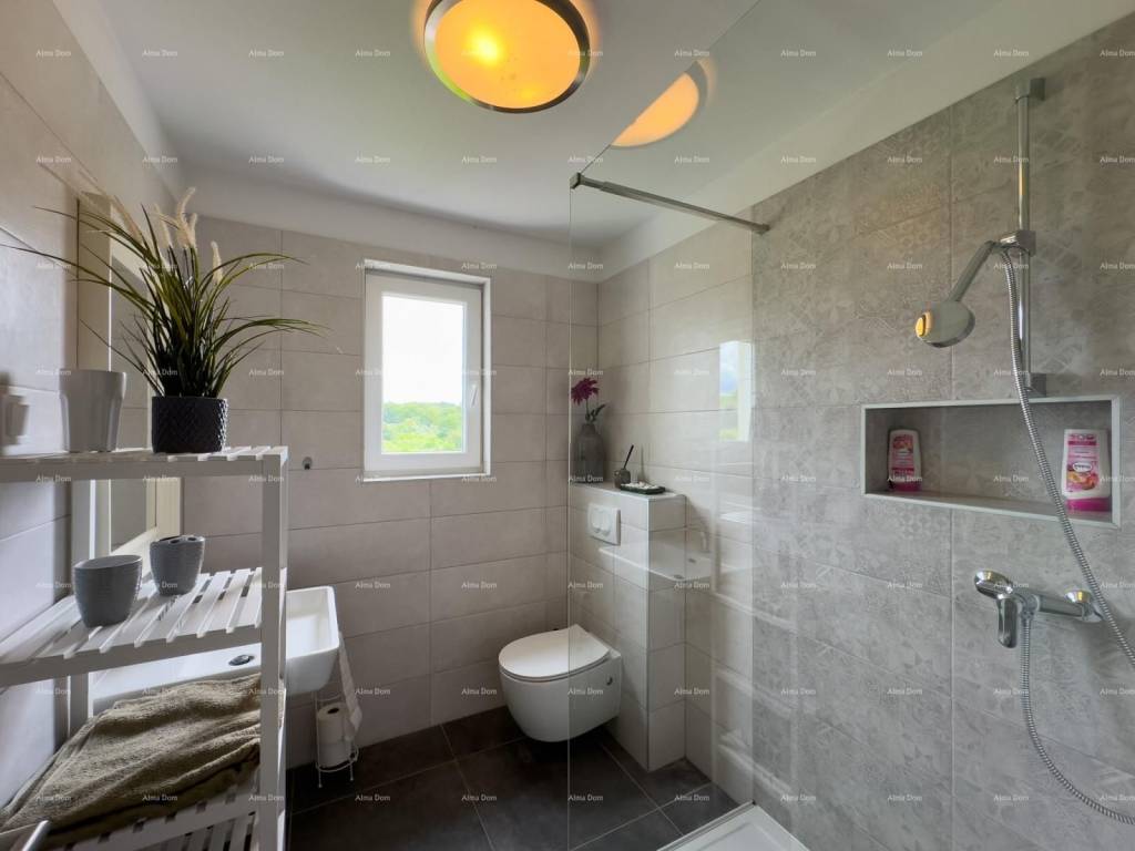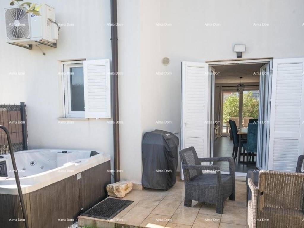 Prodaje se kuća u Novigradu, blizu mora. Kuća sa stambenom površinom od 84 m2 ima vlastiti vrt, idealan za opuštanje uz jutarnju kavu ili uživanje u jacuzziju u večernjim satima. Također ima dvije terase okrenute prema jugozapadu. U prizemlju se nalazi svijetli dnevni boravak s izlazom na terasu, kuhinja s blagovaonicom, dodatna kupaonica, te 30 m2 atrija s jacuzzijem. Na katu se nalaze tri sobe - dvije spavaće sobe s bračnim krevetom i jedna dječja soba s krevetom na razvlačenje i kupaonica. Spavaća soba orijentirana na jugozapad ima prostranu terasu s pogledom na more. U mansardi se nalazi nedovršeno potkrovlje. Kuća se prodaje kompletno namještena, odmah useljiva. Kuća se nalazi u mirnom dijelu Novigrada, samo 3,5 km od plaža, trgovina, restorana i prekrasne stare gradske jezgre.