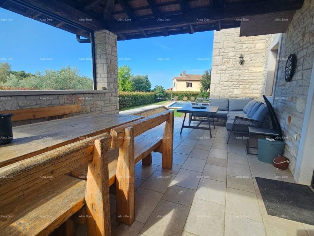 U srcu Svetog Lovreča nalazi se predivna obiteljska kuća površine 164 m, smještena na prostranom zemljištu od 1224 m. Ova moderna kuća, izgrađena 2009. godine, nudi udoban život u 5 soba, uključujući 4 spavaće sobe i dnevni boravak. Uz tri kupaonice, savršen je izbor za obitelj. Uživajte u opuštanju u vlastitom vrtu ili se osvježite u bazenu, čineći svaki dan posebnim. Ova nekretnina nudi idealnu ravnotežu između udobnosti i prirode, stvarajući savršeno mjesto za život.