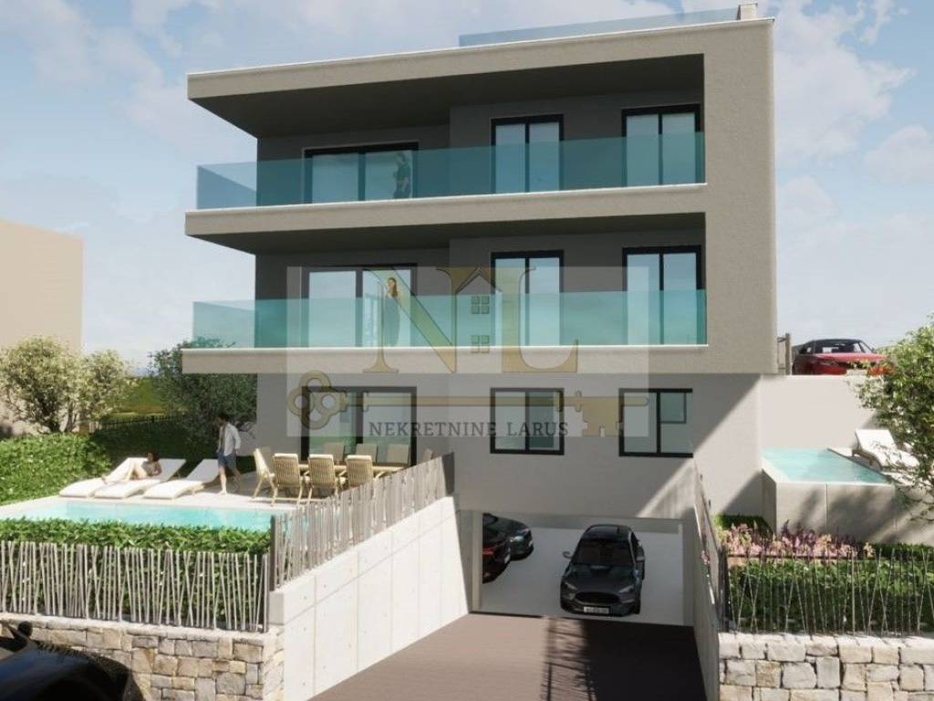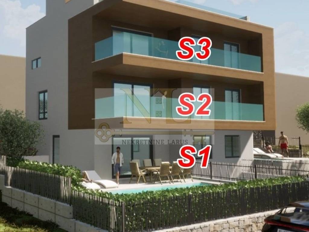 Prodajemo luksuzni penthouse stan S3 na drugom katu sa krovnom terasom, u urbanoj vili, Okrug Gornji, otok Čiovo. Top lokacija. Villa nalazi se na južnoj strani otoka Čiova, 100 metara od mora i plaže. Na blagoj uzvisini, te svi stanovi imaju otvoreni pogled na more i obližnje otoke. Villa ima četiri etaže, podrum u kojem je smješten garažni prostor, prizemlje i dva kata. Zgrada ima ukupno 3 stambene jedinice, odnosno tri prostrana luksuzna trosobna stana od kojih dva imaju vlastiti bazen. Penthouse stan S3 na drugom katu sastoji se od: tri spavaće sobe, dvije kupaonice, hodnik, prostrani dnevni boravak s kuhinjom i blagovaonicom te balkon i krovna terasa. Površine: - unutrašnja površina stana: 84,33 m2 - balkon 18,95 m2 - krovna terasa 87,67 m2 Ukupna podna površina stana: 190,95 m2 Stanu pripadju 2 parkirališna mjesta, jedno garažno i jedno vanjsko. Planirani završetak radova je 01.06.2026. godine.