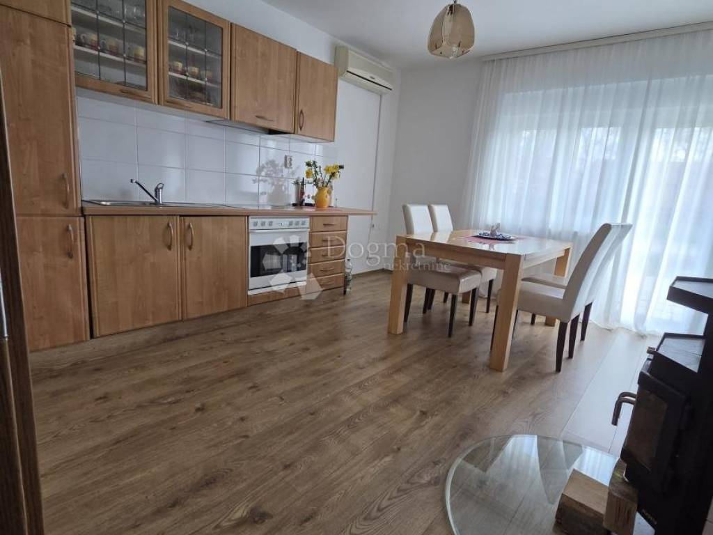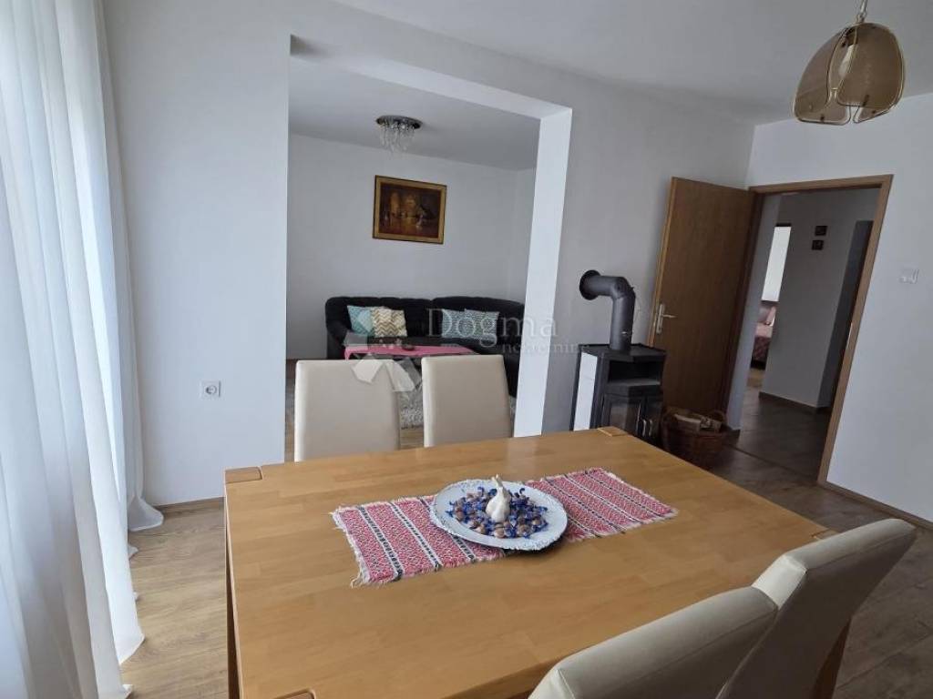 Unutrašnjost je osmišljena za svakodnevnu udobnost: svijetao dnevni boravak povezan s kuhinjom i blagovaonicom čini srce doma, dok se na drugoj strani nalaze dvije prostrane spavaće sobe i velika, funkcionalna kupaonica. Prostor odiše svjetlom i ugodom, stvarajući savršeno mjesto za opuštanje i druženje.