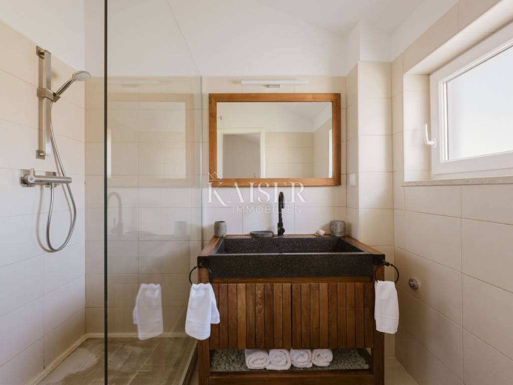 Ova nekretnina idealna je za sve koji žele uživati u luksuznom životu uz more, okruženi prirodnim ljepotama i nezaboravnim pogledima. Lokacija nekretnine idealna je za opuštanje u prirodnom ambijentu a sam kompleks okružen je uređenim zelenilom, što dodatno pridonosi osjećaju mira i privatnosti. Vanjske terase savršene su za opuštanje nakon dana provedenog na obližnjim plažama, ronjenja, pješačenja na obližnja brda ili vožnje biciklom.