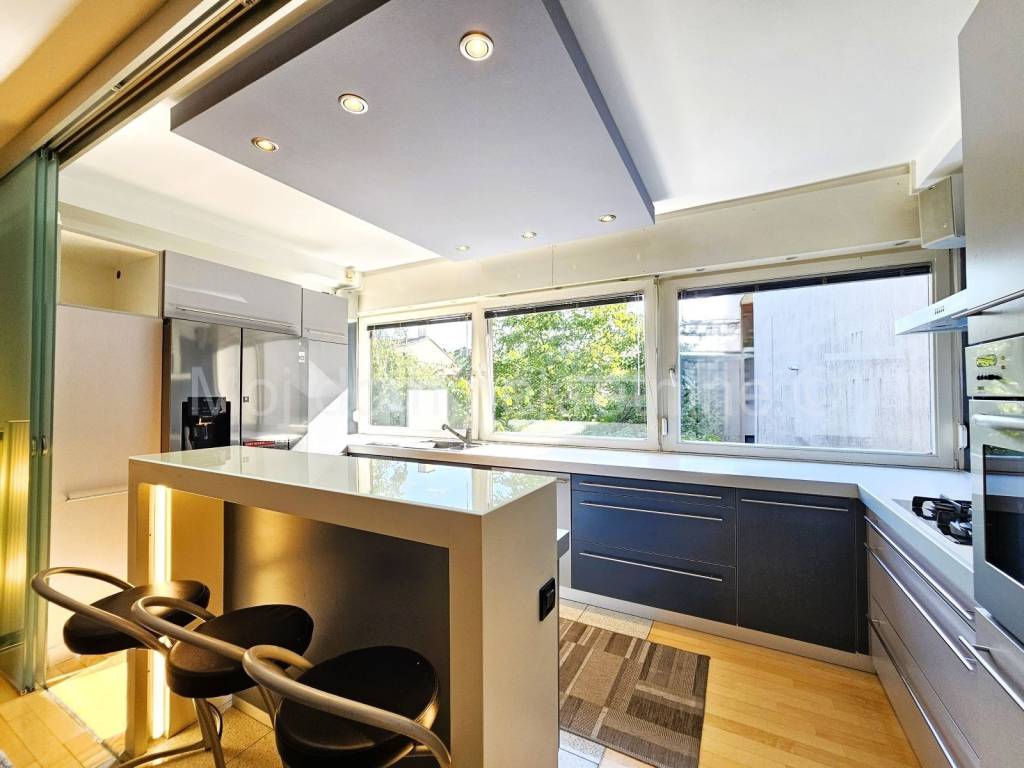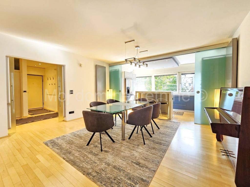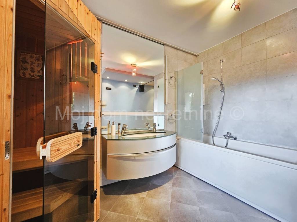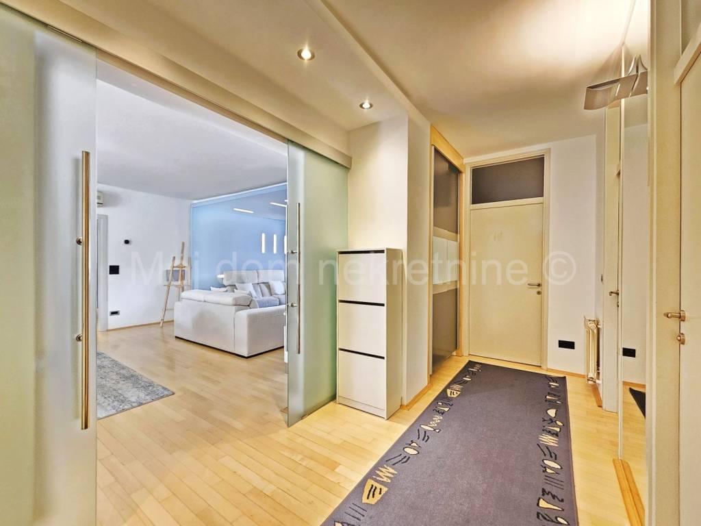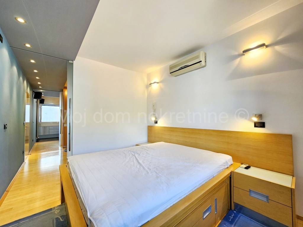 Sastoji se od: - dnevnog boravka s kuhinjom i blagovaonom - 2 dječje spavaće sobe - kupaone - spavaće sobe s garderobom i kupaonom - ostave (vešeraj) - ulaznog hodnika