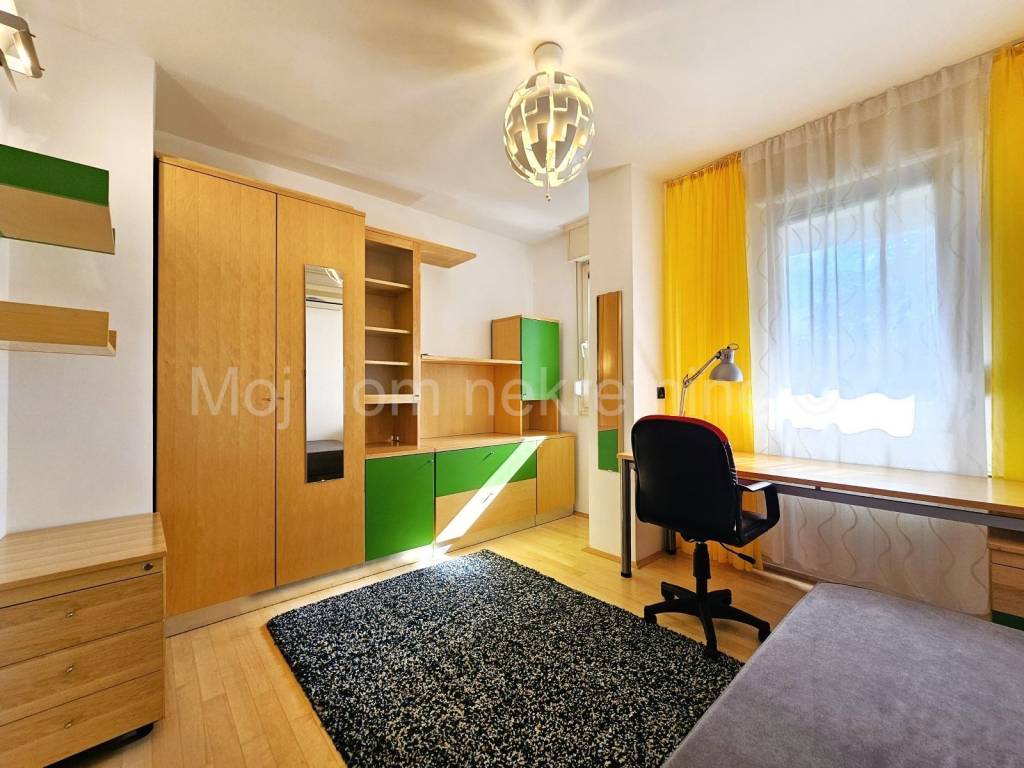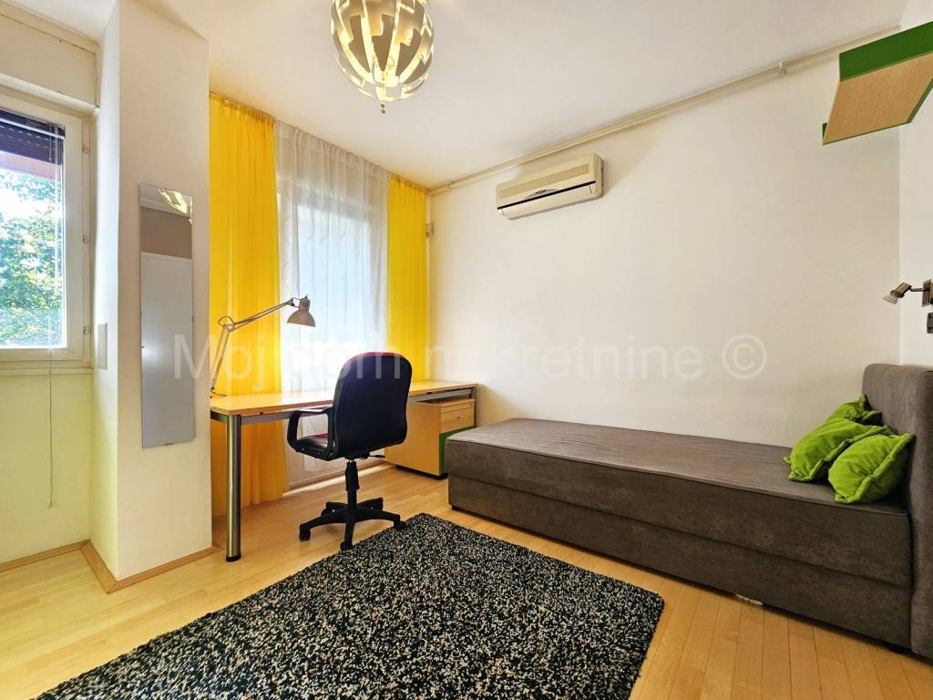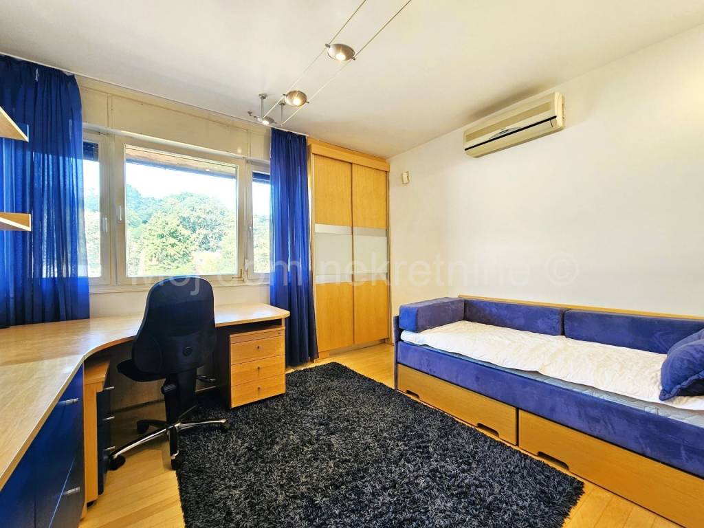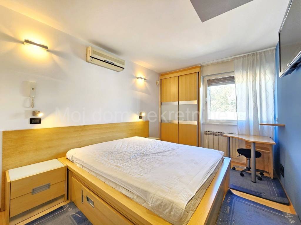 BEZ PROVIZIJE ZA NAJMOPRIMCE-FIZIČKE OSOBE! Uvijek najpovoljniji ! Iznajmljuje se prostran 4 soban stan na 4. katu zgrade s liftom. Pripada mu garažno mjesto. Izrazito je svjetao radi svoje dvostrane orijentacije. Opremljen je PVC stolarijom s roletama, protuprovalnim vratima, klima uređajem te saunom. Nalazi se u mirnoj ulici, u blizini javnog prijevoza te drugih bitnih sadržaja.