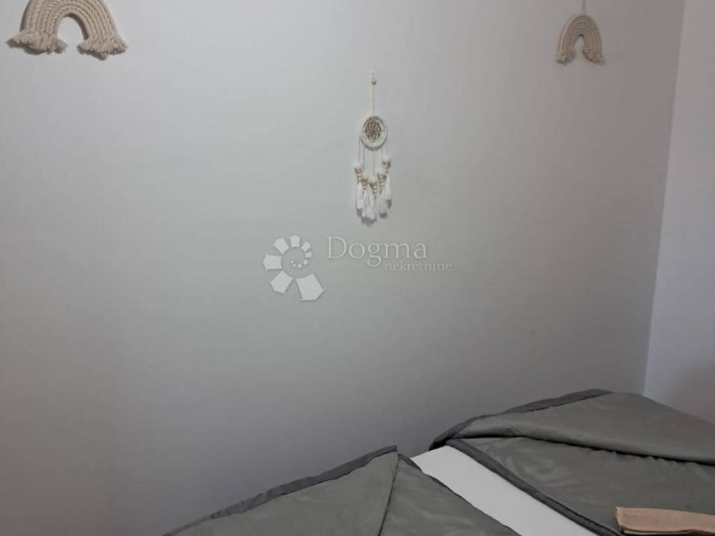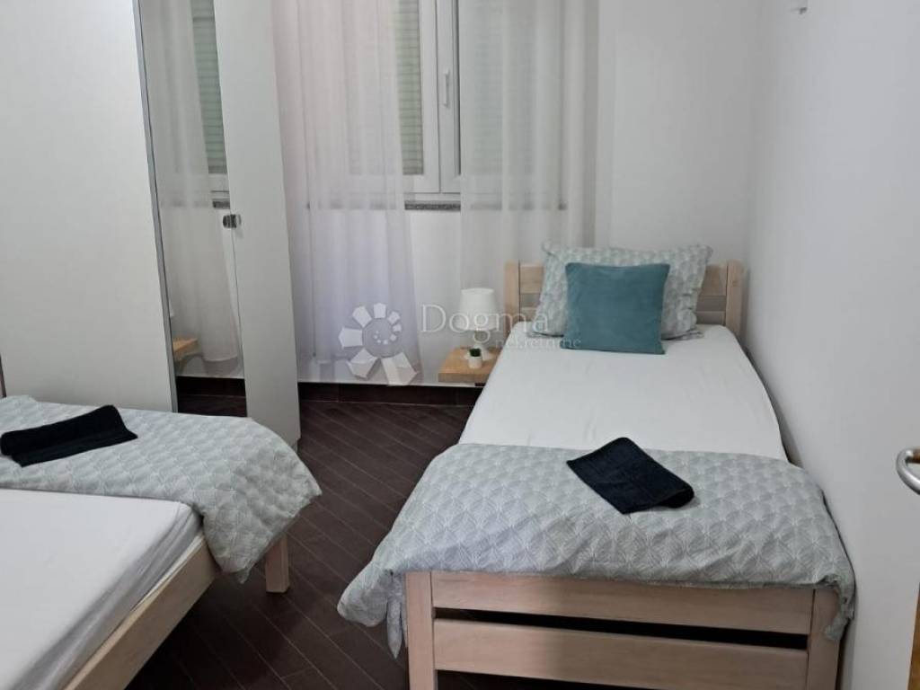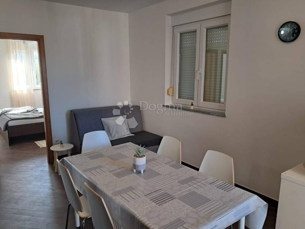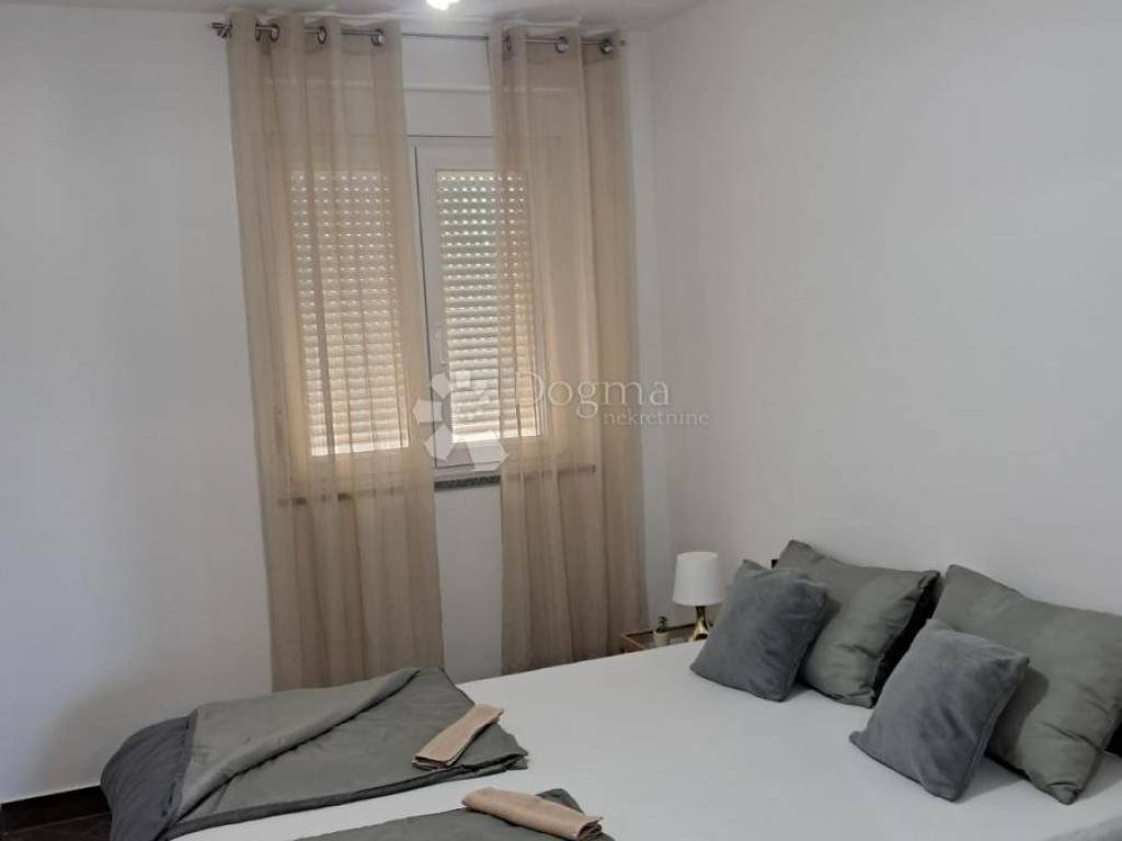 Prodaje se nekorišten , namješten , useljiv apartman na 1. katu zgrade od ukupno 9 apartmana . Apartman je kompletno namješten i nikad nije korišten. Sastoji se od velikog hodnika, 2 spavaće sobe prostrane sobe , prostranog kupatila te kuhinje s blagovaonicom i dnevnim boravkom iz kojeg se izlazi na komotan balkon. Pogled Velebot i more. Vlastiti priključci struje i vode. 1 parkirno mjesto.