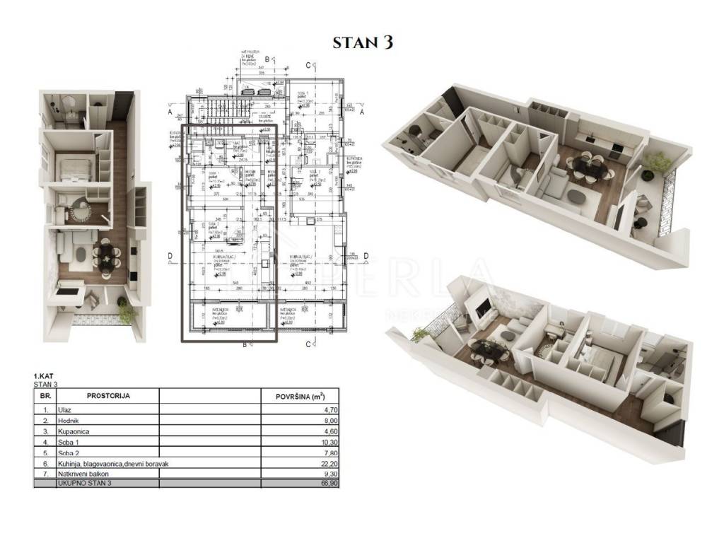 S3 - dvosobni stan od 70,14 m2 na 1. katu - 280.000,00 €