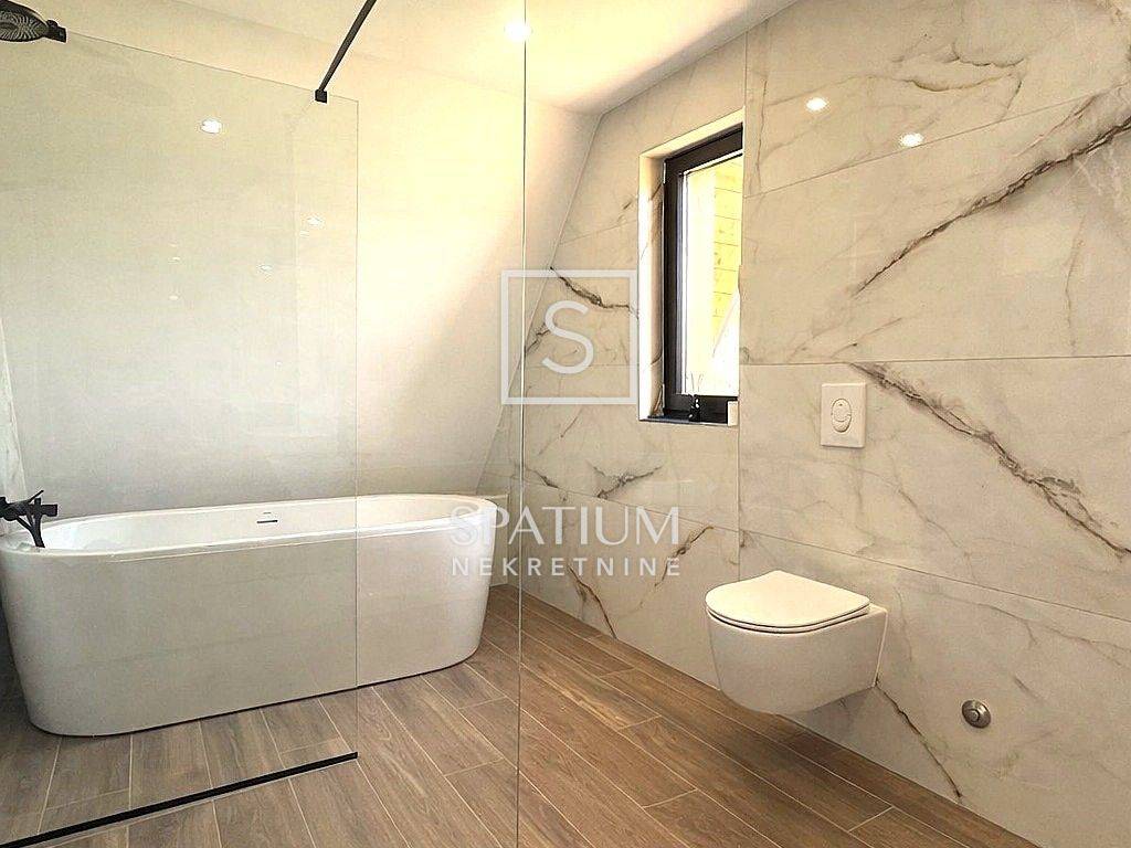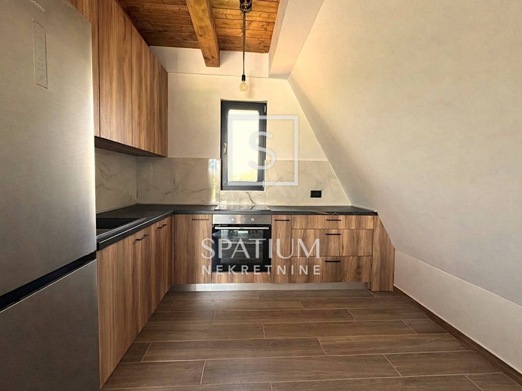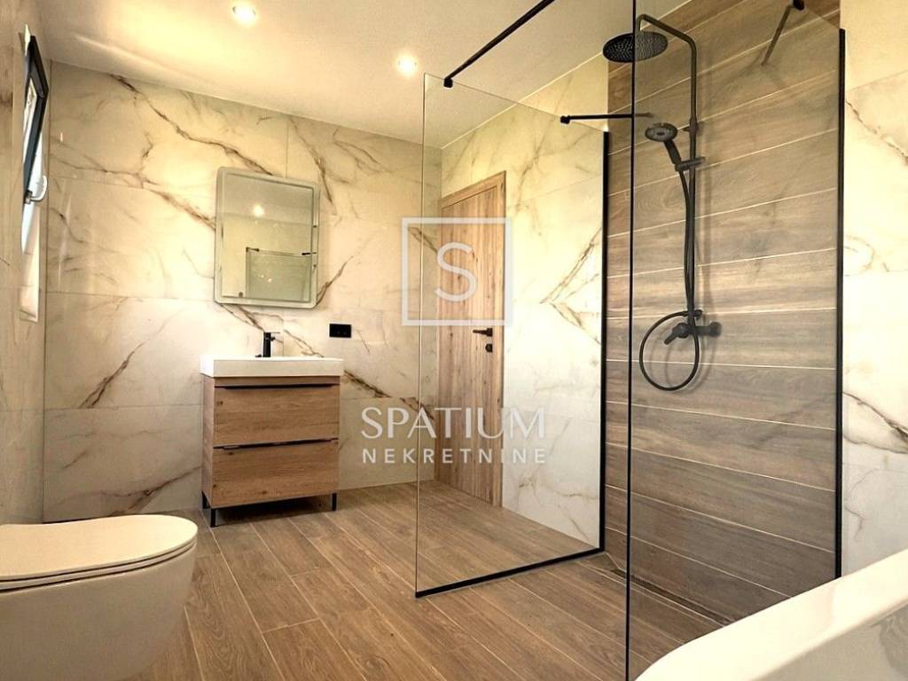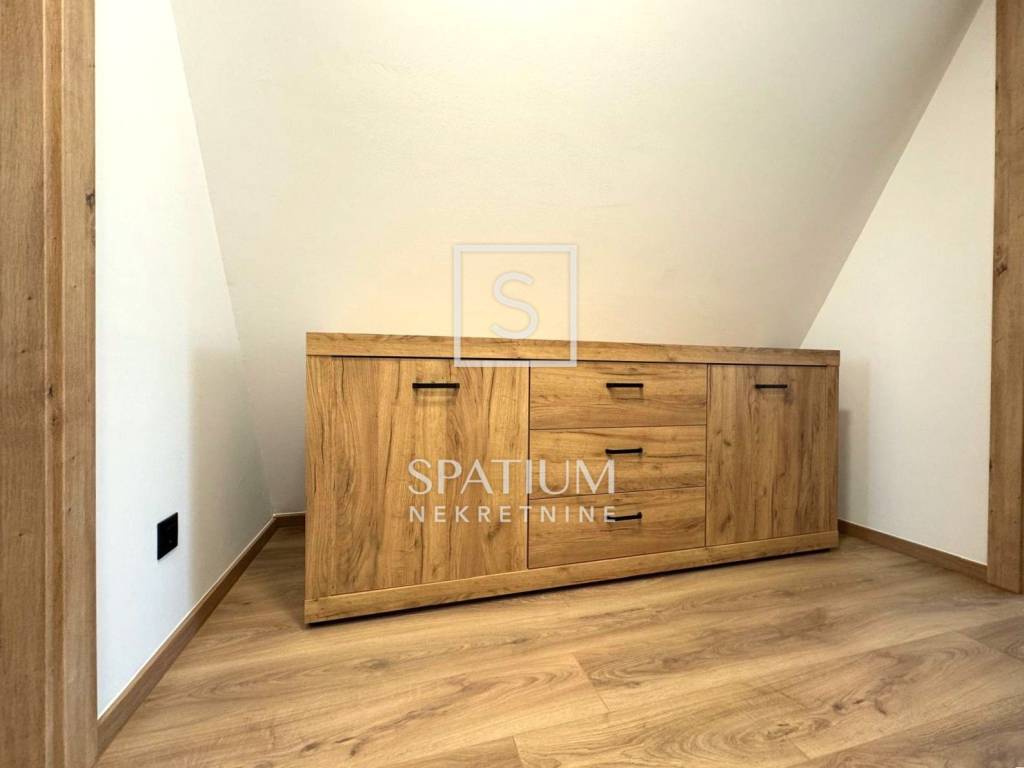 Unutarnje stepenice vode na kat na kojem su smještene dvije spavaće sobe te dodatni toalet. Kuća je opremljena modernom kuhinjom, podnim grijanjem i klima uređajima te kaminom na drva za potpuni ugođaj. Prostrana okućnica od 747m2 s pogledom na rijeku Kupu pruža dovoljno mogućnosti za uživanje u prirodi i druženje na otvorenom. Po potrebi, moguće je dokupiti dodatnu i parcelu koja se također nalazi u građevinskoj zoni.