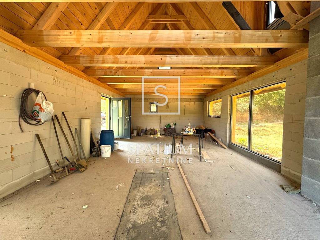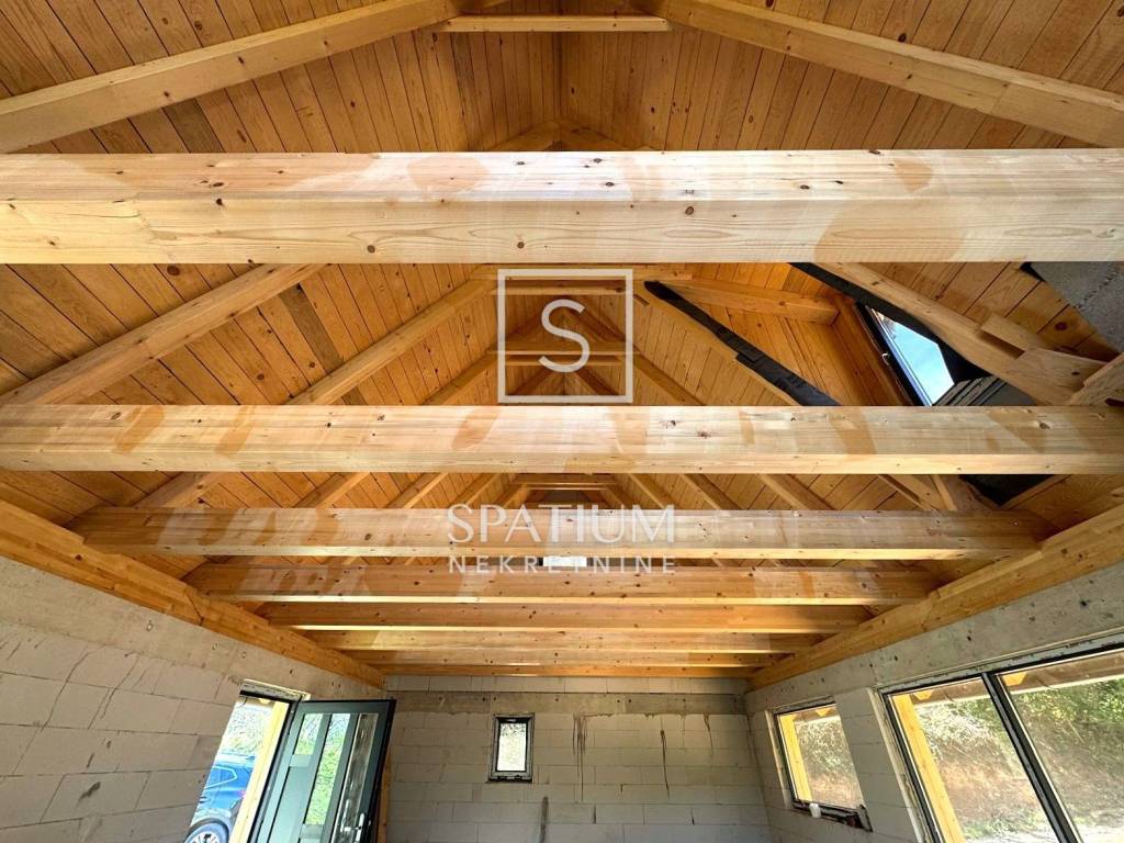 Unutarnje stepenice bi vodile u visoko potkrovlje s dvije spavaće sobe i kupaonicom. U suterenu se nalazi i konoba koja se može prenamijeniti prema želji budućeg vlasnika. Kuća je kvalitetno građena (ventilirajuća fasada, vrhunska stolarija, lamelirane grede, ventilirajući biber crijep..).