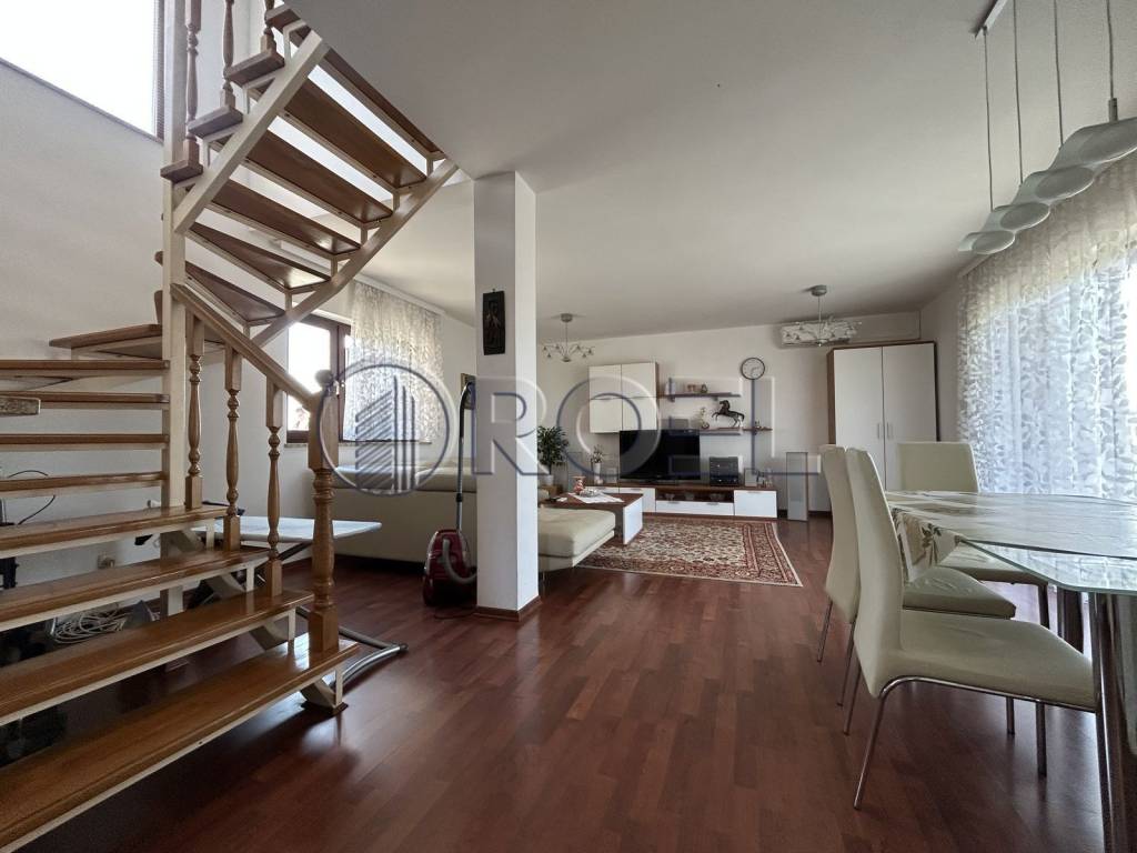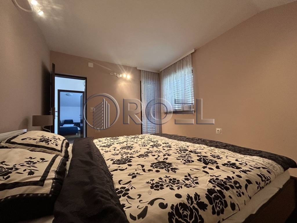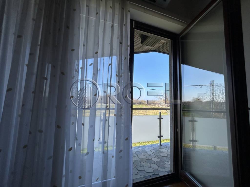 U prizemlju se nalaze kuhinja, blagovaonica, dnevni boravak s izlazom na terasu, kupaonica, te veliko spremište. Na drugoj su etaži tri spavaće sobe, kupaonica, loggia i prostrana terasa s koje se pruža predivan pogled na zelenilo.