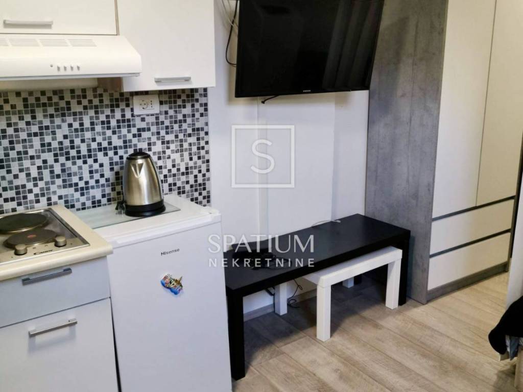 Druga jedinica izvedena je kao garsonijera koja ostvaruje dobar godišnji povrat investicije kroz kratkoročni najam. Garsonijera je u potpunosti uređena 2019. godine. Stan ima dva klima-uređaja i peć na pelete, a garsonijera ima jedan klima-uređaj.