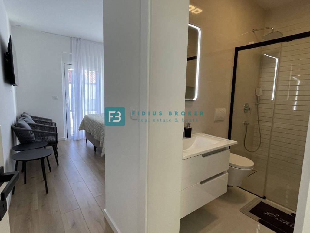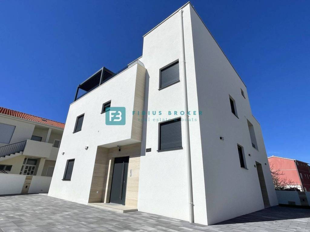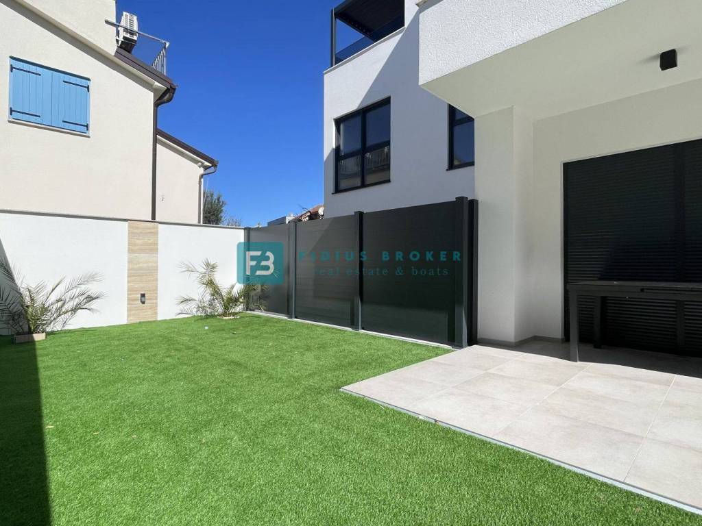 Dvojni objekt u novogradnji smješten u mirnom i uređenom dijelu grada, okružen obiteljskim kućama. Nalazi se u slijepoj ulici što osigurava mir i privatnost. Na udaljenosti od samo 300 m od plaže i 1300 m od centra grada, omogućuje da se udaljite od gradske gužve i stresa, a ipak ste samo nekoliko minuta udaljeni od svih pogodnosti koje Vodice nude. Prednost ove nekretnine je troetažni raspored koji pruža dodatnu privatnost i čini životni prostor funkcionalnijim i ugodnijim. Osim toga, svaka jedinica dolazi s vlastitim dvorištem te dva parkirna mjesta.