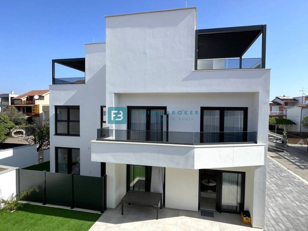 VODICE - SRIMA, novo, namještena dvojna kuća, 300 m do plaže, pogled na more, 3 spavaće sobe