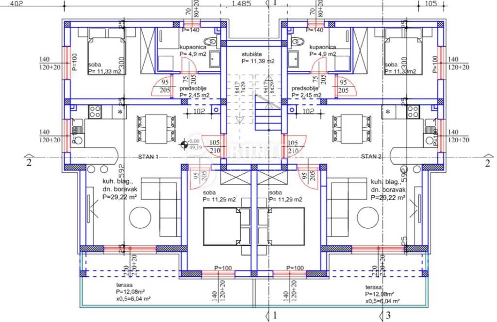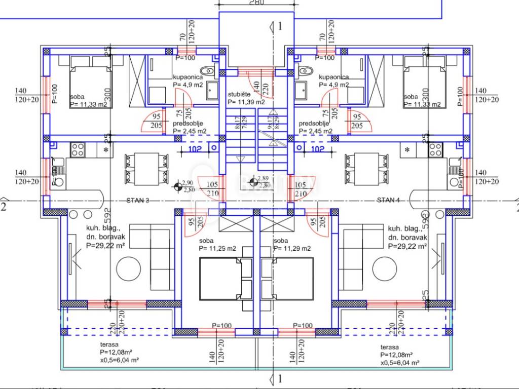 - Kuhinje, blag. i dn.boravak (29,22 m2)