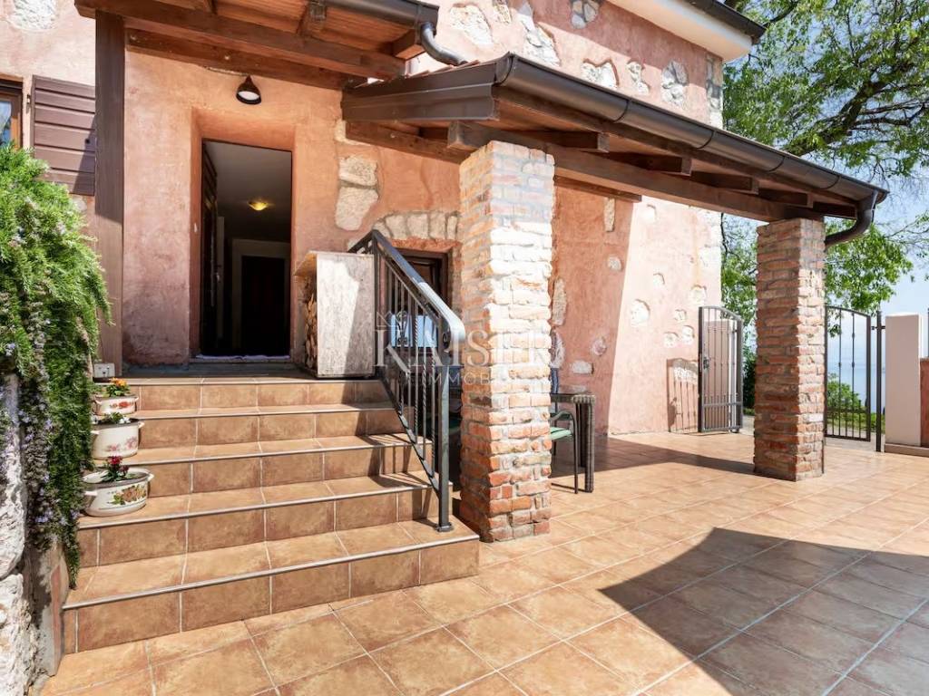 Uređeni vrt, nalik malom parku, vodi do natkrivenog parkinga, a položaj nekretnine omogućuje otvoren, ne smetan pogled na more.