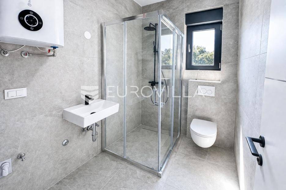 Na prodaju je stan na 1. katu manje stambene zgrade s ukupno 5 stambenih jedinica, smješten u mirnom dijelu Jakišnice, na samom rubu građevinskog pojasa.Stan se sastoji od dvije spavaće sobe, kuhinje s blagovaonicom i dnevnim boravkom, kupaonice, zasebnog wc-a, natkrivene terase, spremišta te dva parkirna mjesta. Ukupna neto korisna površina iznosi 63,79 m2.Stan odlikuje vrlo kvalitetna oprema od čega izdvajamo:Mitra protuprovalna i protupožarna vrataMDF unutarnja vrata sa skrivenim pantimaTroslojna stolarija s komarnicima i električnim roletamaBjelini parket u sobama italijanska gres porculan keramika velikog formataPodno električno grijanje te Daikin klima uređajiGeberit sanitarije, Hansgrohe slavine i tuševi te tuš kabine s kaljenim staklom 8mmOdlična nekretnina za odmor, cjelogodišnje korištenje ili turistički najam na jednoj od mirnijih i uređenijih lokacija sjevernog dijela otoka Paga.Za više informacija stojim na raspolaganju.... Više na eurovilla.hr, ID: 637356