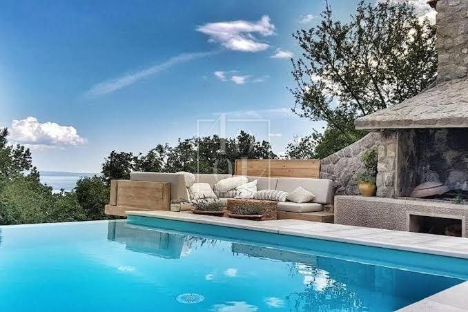 Na prodaju je ekskluzivna luksuzna vila smještena na iznimnoj lokaciji u Veprincu, iznad Opatija, s otvorenim panoramskim pogledom na more i Kvarnerski zaljev, koja predstavlja vrhunsku priliku za kupce koji traže spoj privatnosti, prestiža i dugoročne vrijednosti. Vila se prostire na impresivnih 400 m² stambene površine i nalazi se na prostranoj okućnici od čak 3.343 m², što osigurava potpunu intimnost i osjećaj ekskluzivnog posjeda. Sastoji se od šest prostranih spavaćih soba, pri čemu svaka soba ima vlastiti klima uređaj za maksimalnu udobnost tijekom cijele godine, četiri moderno uređene kupaonice te dodatnog odvojenog sanitarnog čvora, uz dva elegantna dnevna boravka i potpuno opremljenu kuhinju, pri čemu je svaki prostor osmišljen kako bi pružio vrhunsku funkcionalnost i osjećaj luksuza. Interijer je povezan s vanjskim prostorima kroz velike staklene površine koje vode na terase i balkon s kojih se pruža očaravajući pogled na more, stvarajući snažan doživljaj mediteranskog načina života. U sklopu okućnice nalazi se privatni bazen, jacuzzi zona te vanjski kamin i prostor za roštilj, idealni za opuštanje i druženja, dok uređeni vrt dodatno naglašava mir i ekskluzivnost ove nekretnine. Vila raspolaže garažom s dva parkirna mjesta te dodatna dva vanjska asfaltirana parkirna mjesta, a opremljena je i punionicom za električna vozila, što odgovara suvremenim standardima stanovanja. Posebnu vrijednost dodatno potvrđuje kategorizacija od 5 zvjezdica, što ovu nekretninu čini iznimno atraktivnom i za turistički najam. Zahvaljujući atraktivnoj lokaciji, blizini mora i svih ključnih sadržaja, kao i već potvrđenom potencijalu za turistički najam, ova vila predstavlja rijetku priliku na tržištu – bilo kao luksuzna rezidencija ili kao sigurna i profitabilna investicija.