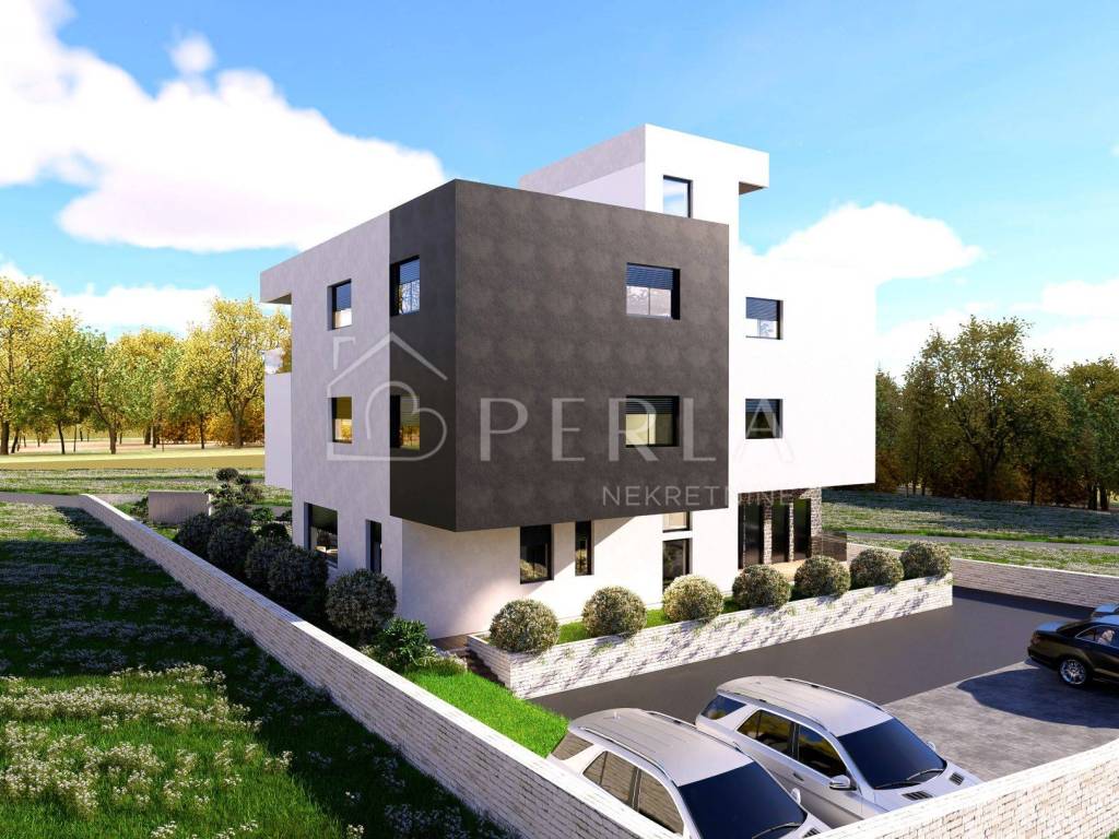 Na mirnoj lokaciji, svega 150 metara od mora, smješten je moderan projekt novogradnje.