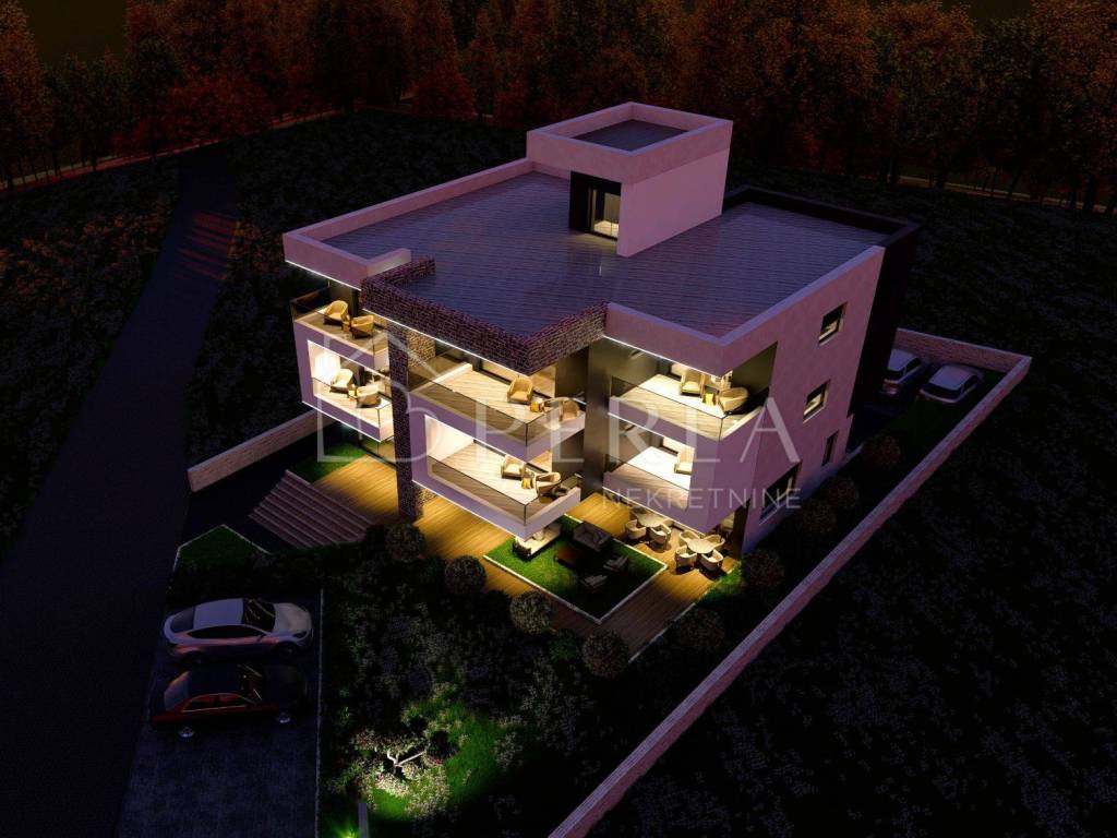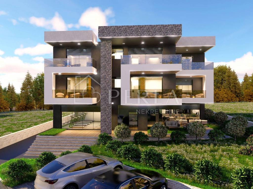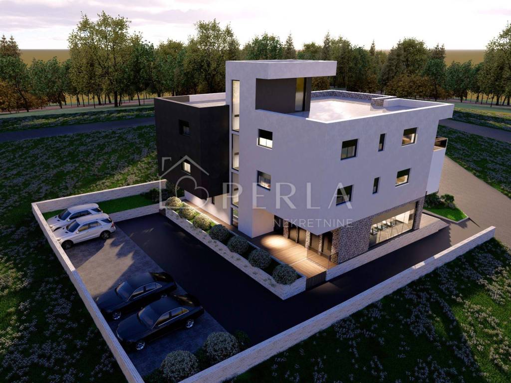 Na mirnoj lokaciji, svega 150 metara od mora, smješten je moderan projekt novogradnje.